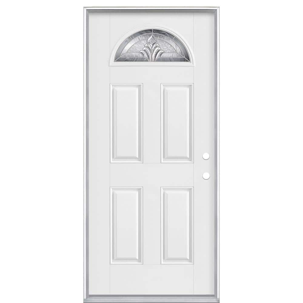 Masonite 36 x 80 in. Left-Hand Inswing Providence Fan Lite Primed Fiberglass Prehung Front Exterior Door, No Brickmold