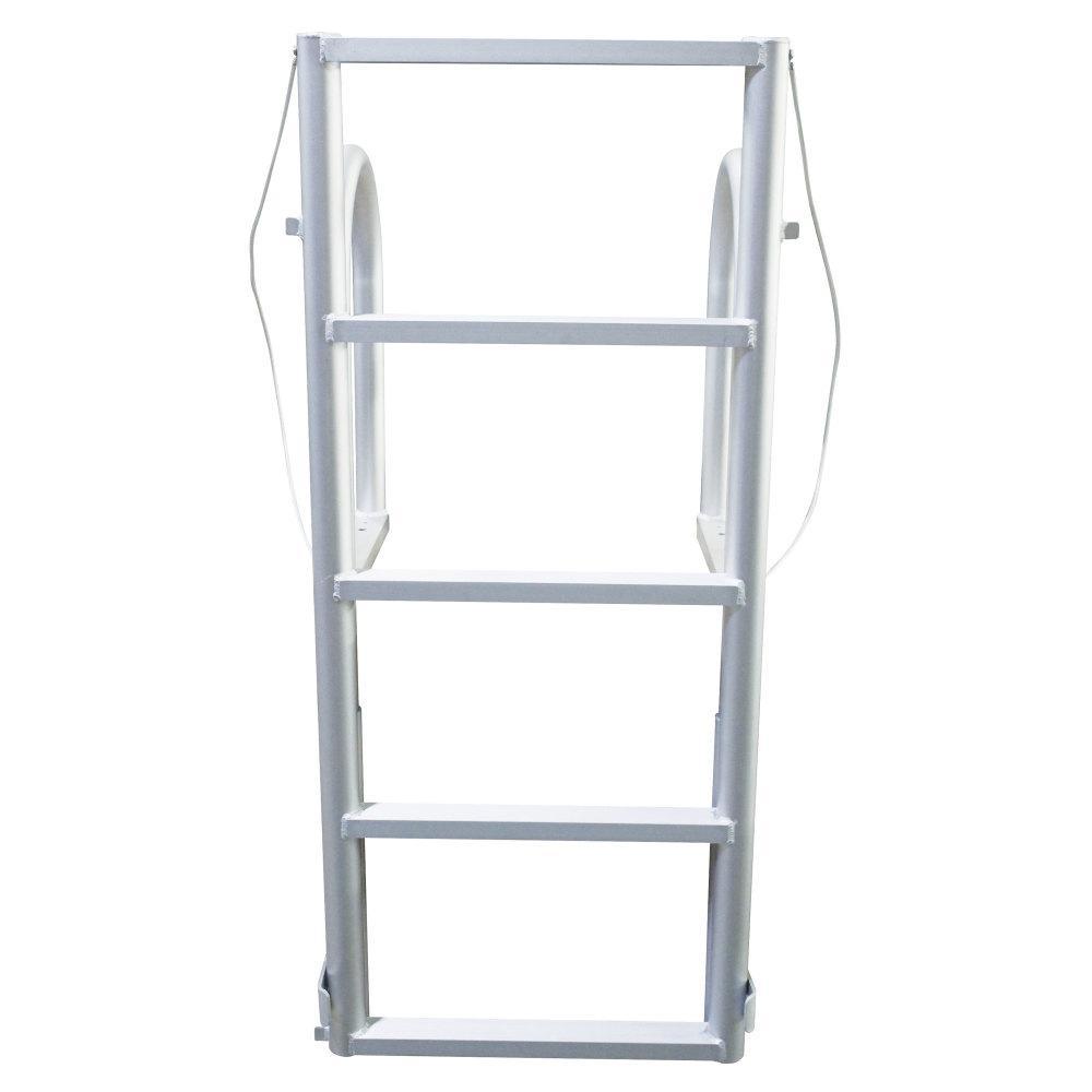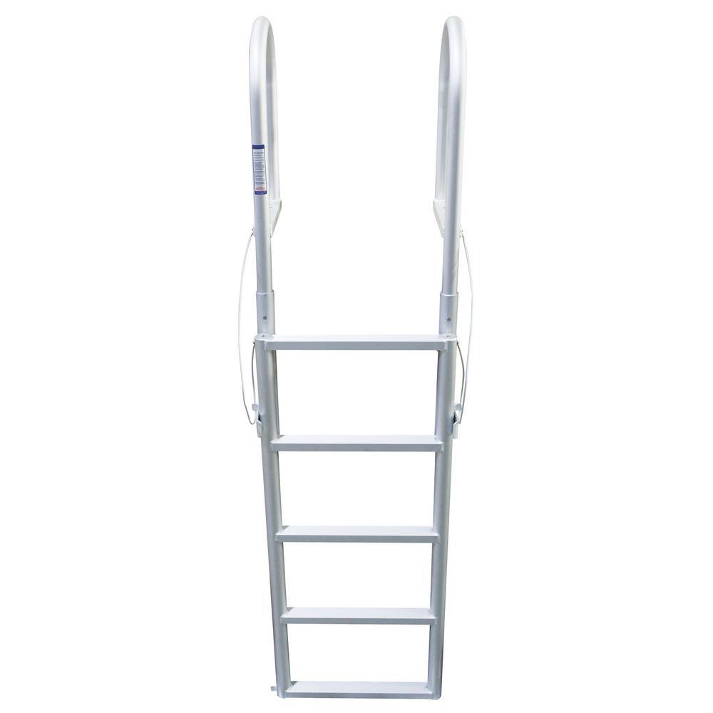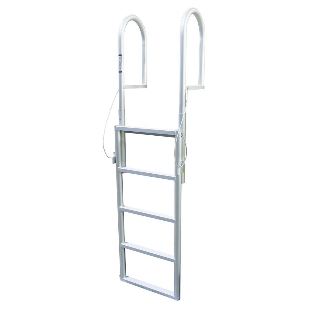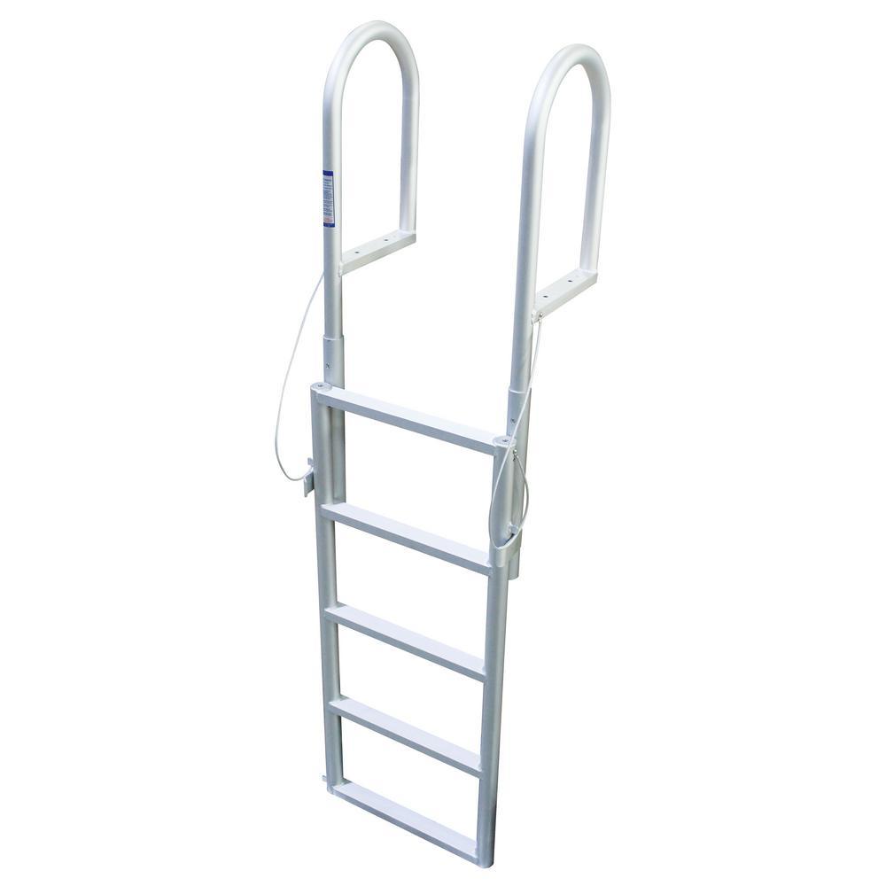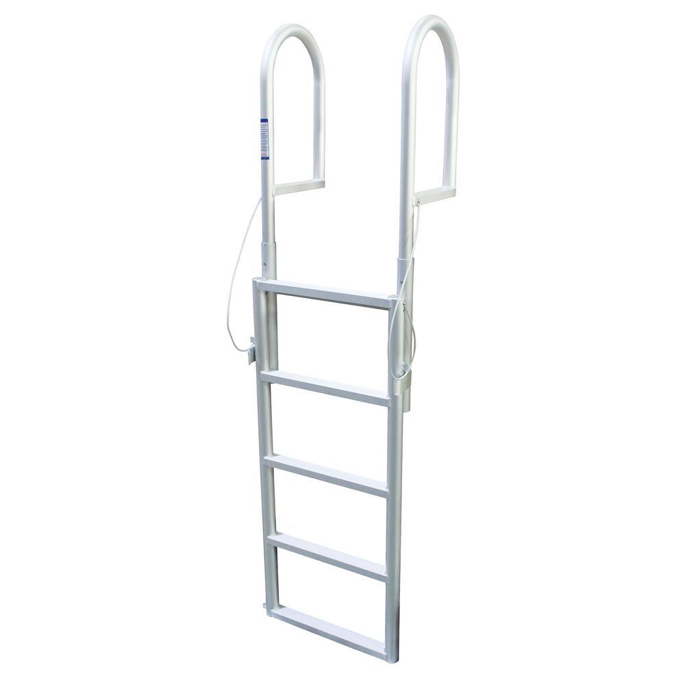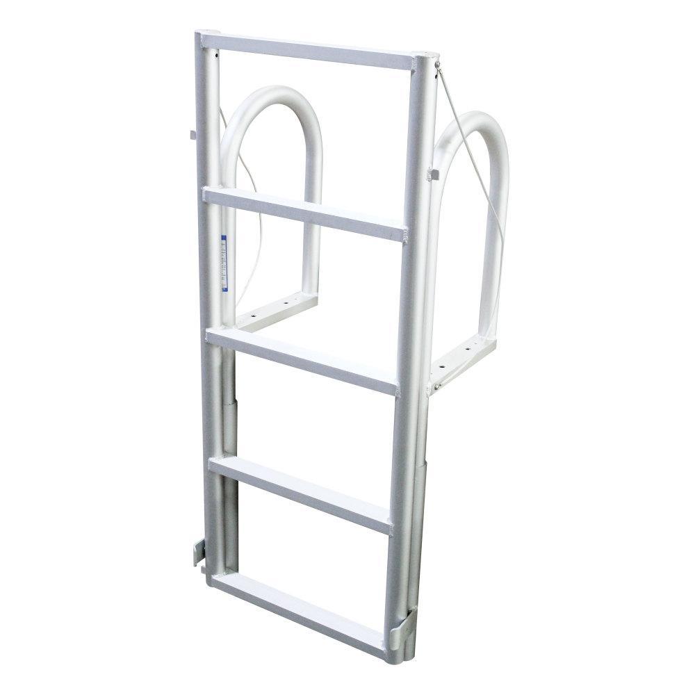 Weeds and algae can accumulate on your ladder almost overnight, for slippery, slimy times. Slide your ladder out of the water when it's not in use for a more pleasant, safer boarding experience. Sliding dock ladder is made of welded aluminum for a 300 lbs. capacity. Robust 18" width for comfort. The sliding design offers the convenience of a permanently mounted ladder that can be removed from the water with minimal view obstruction. Quick, simple assembly using common hand tools. Due to the wide range of surfaces to with the ladder may be mounted, mounting hardware is not included. Corrosion-resistant in freshwater applications; oxidation may occur in brackish and saltwater. Two-year warranty. Note: While the step portion of the ladder may be removed from the water at any time, the step support section will remain permanently positioned at a length of 24" down from the mounting surface. If keeping the entire ladder out of the water is a concern, mount the ladder on a surface at least 24" above the waterline.