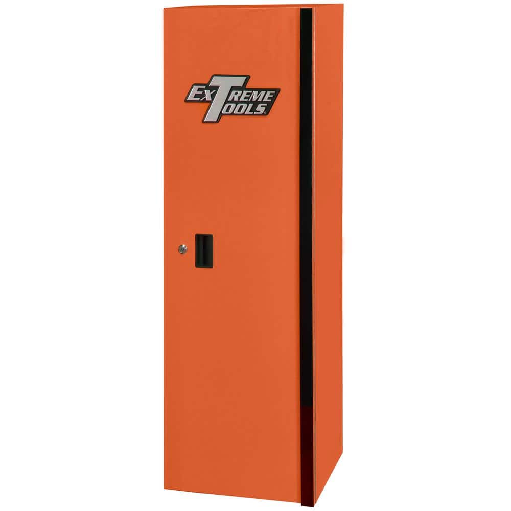Expand your tool storage setup with the Extreme Tools 3-Drawer Orange Tool Chest, perfect for professionals seeking durability and functionality. This robust side cabinet boasts full-extension drawers and adjustable shelving, featuring a vivid powder-coated finish and secure locks for optimal tool organization and protection.