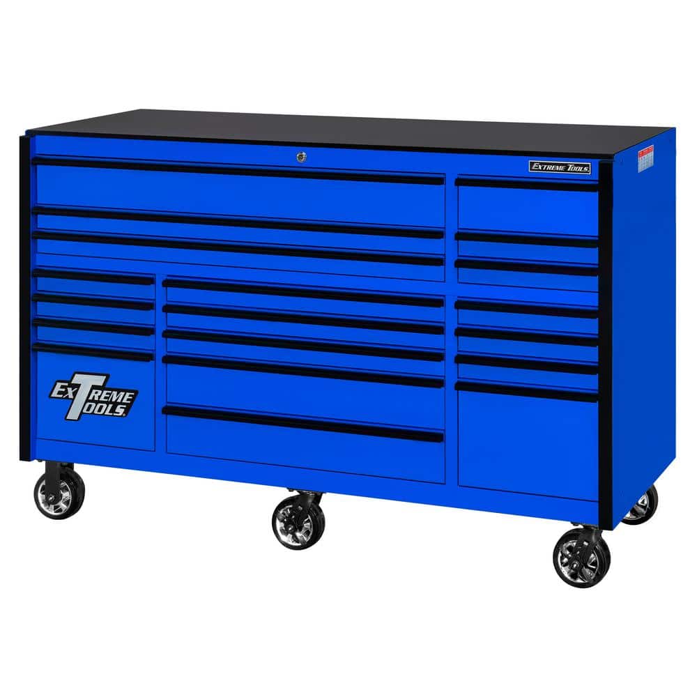Extreme Tools RX Professional 72 in. W x 25 in. D 19-Drawer Blue Rolling Tool Cabinet with 150 lbs. Slides and Black Drawer Pulls