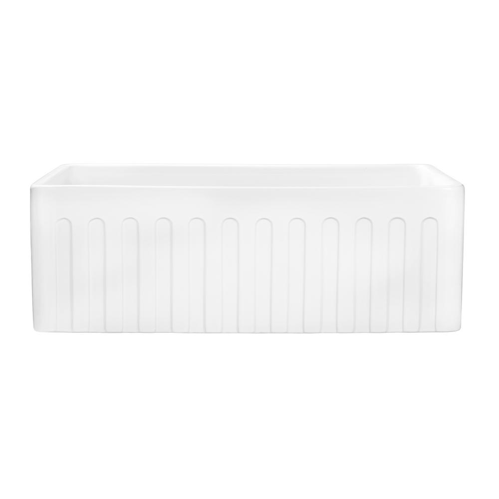 The Fiamma Fireclay kitchen sink from Ruvati sets a new standard in home kitchen design. Handbuit in Italy by skilled artisans who have mastered their craftsmanship over generations, Ruvati fireclay sinks are at the pinnacle of art and form. The raw clay used in Ruvati's fireclay sinks is a unique natural white clay found only in a few regions in the world, including Italy. The clay is fired at an temperature of 2900°F giving the solid sink exceptional strength and durability. During the process the surface of the sink fuses with the interior, giving an enamel surface that is completely resistant to chips, cracks, abrasions and scratches. These properties make Ruvati fireclay sinks a superior choice compared to alternative materials such as cast iron enamel and ceramic sinks which can easily chip or crack. Ruvati is one of the few manufacturers to source their fireclay sinks from Italy, one of the few regions in the world that produces true fireclay. Alternative ceramic sinks from competitors, sourced from other regions of the world such as Asia and Middle East, may look similar to fireclay, but are not anywhere close to the strength and durability offered by true Italian fireclay sinks. One side is a smooth flat finish and the other side has a decorative fluted design. Based on your design preference you can choose to install the sink either way. Ruvati's Fiamma fireclay sink now brings this timeless farmhouse classic to the modern American kitchen.