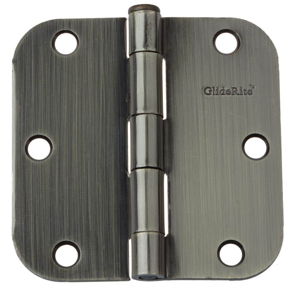 GlideRite 3-1/2 in. Antique Brass Steel Door Hinge, 5/8 in. Corner Radius with Screws (12-Pack)