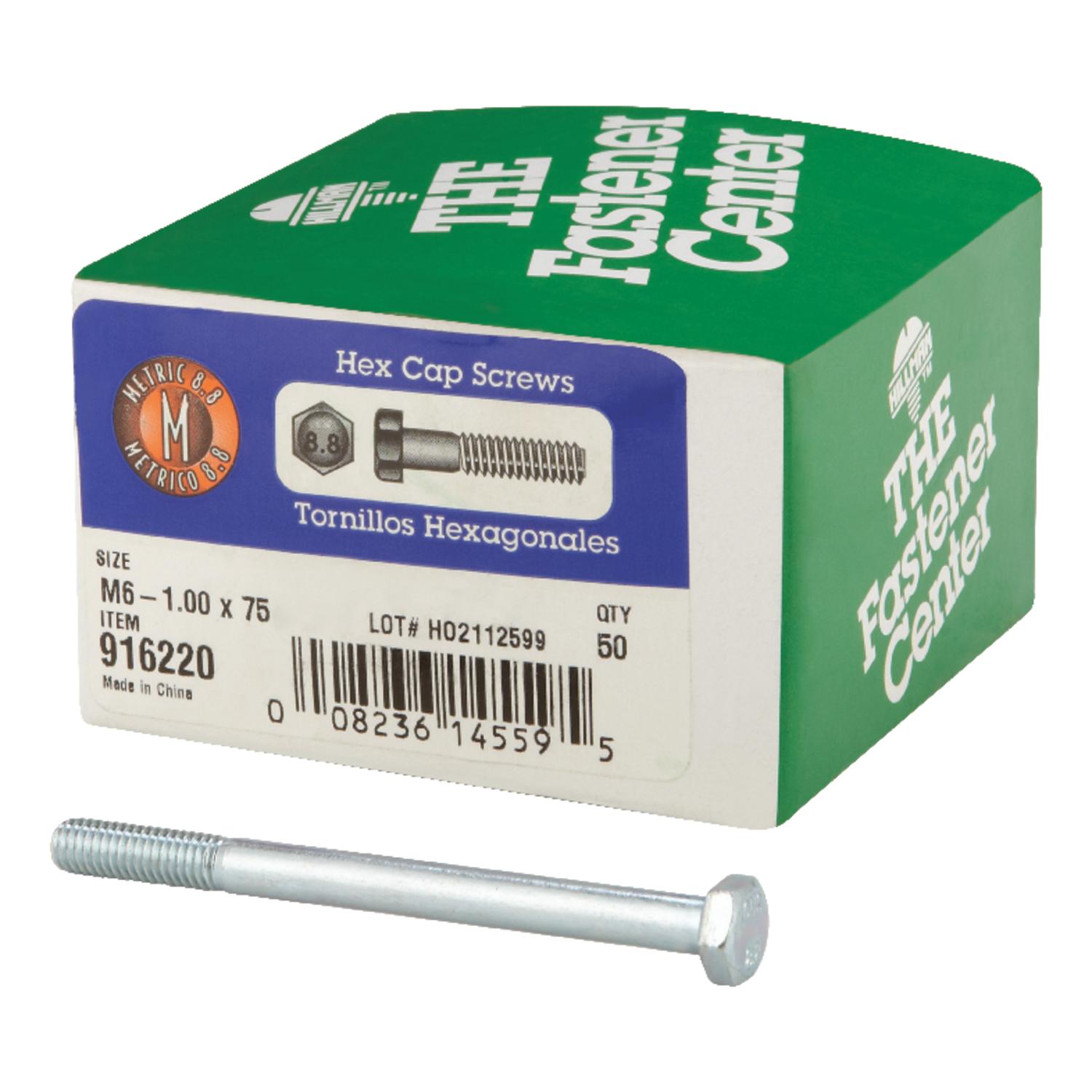 Hillman M6-1.00 mm x 75 mm Heat-Treated Steel Hex Head Cap Screws, 50-Pack
