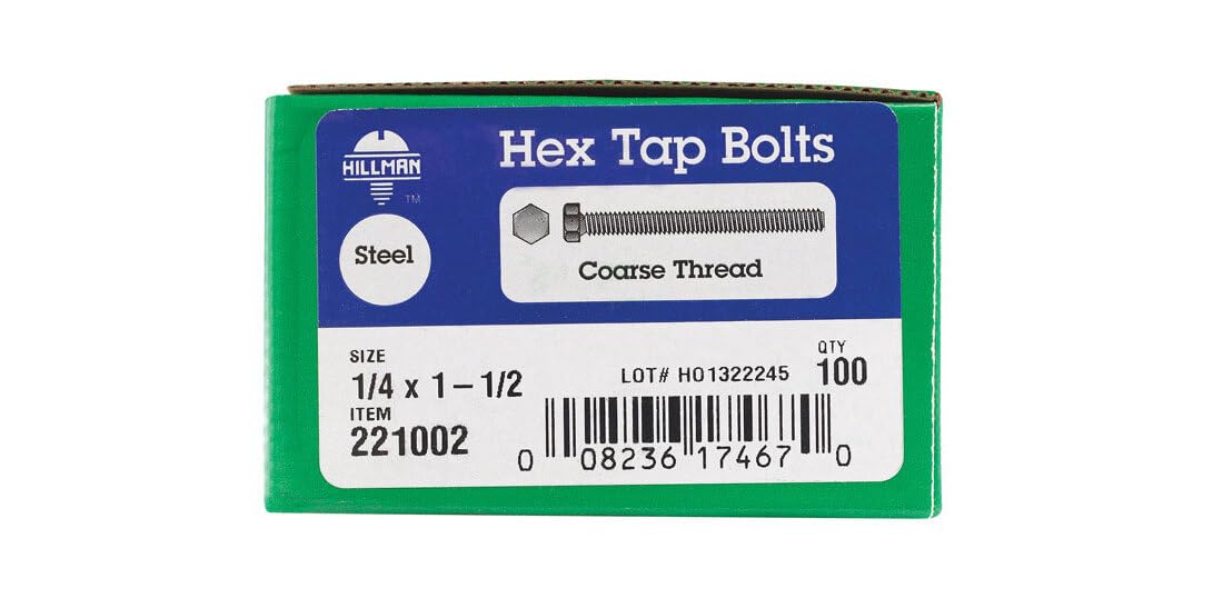 Hillman 1/4 in. Dia x 1-1/2 in. L Zinc-Plated Steel Hex Tap Bolts, Coarse Thread, 100-Pack