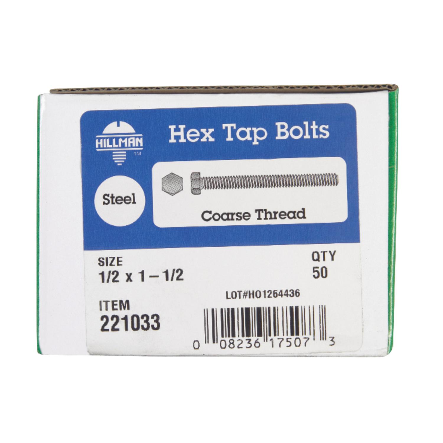 Hillman 1/2 in. Diameter x 1-1/2 in. Length Zinc-Plated Steel Hex Tap Bolts, Coarse Thread, 50-Pack