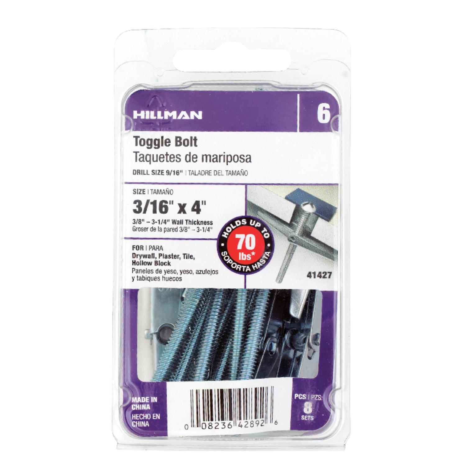 Regular price $7.99Hillman 3/16" x 4" Zinc-Plated Toggle Bolts (8-Pack)