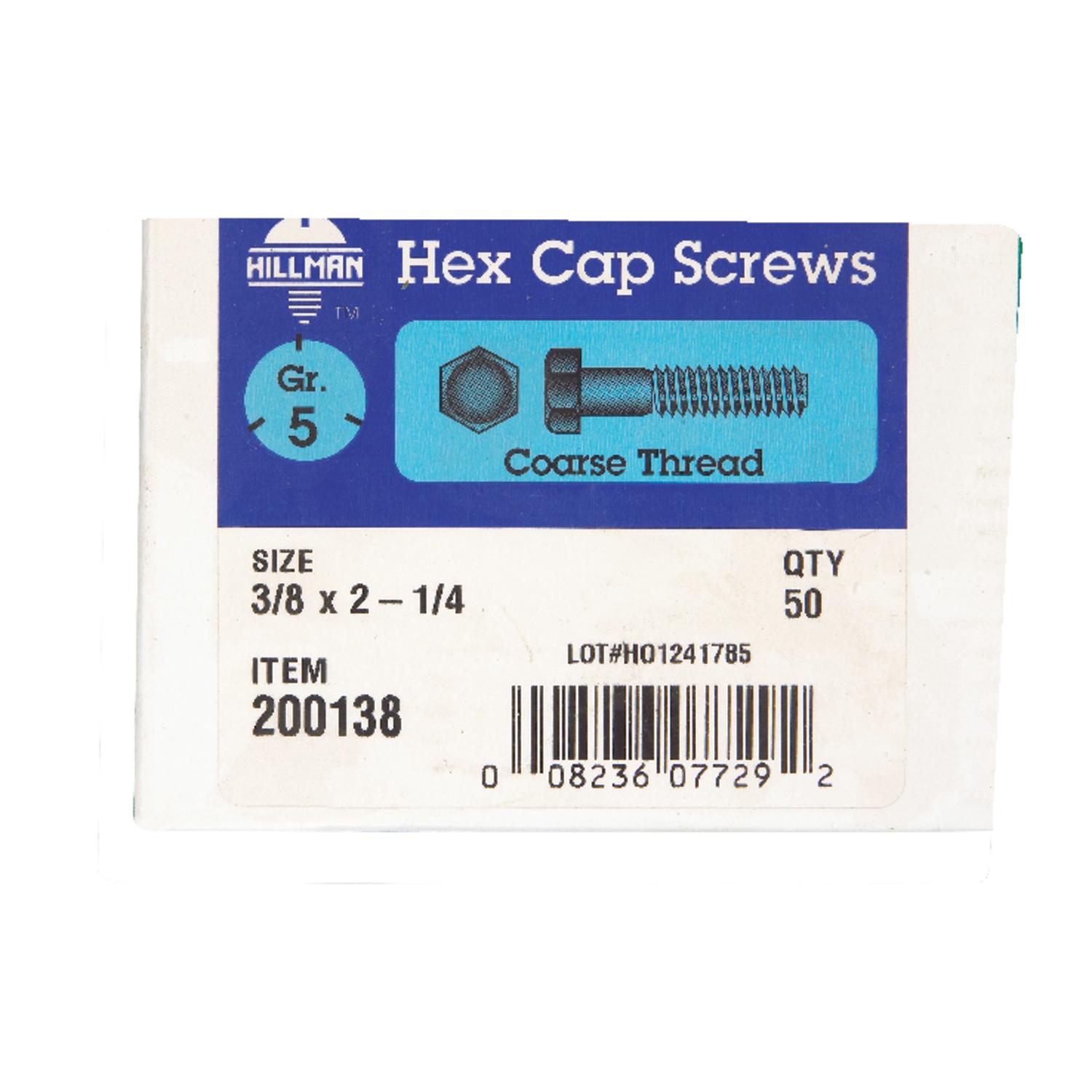 Hillman 3/8 in. Diameter x 2-1/4 in. Length Grade 5 Heat-Treated Zinc Steel Hex Head Cap Screws, Coarse Thread, 50-Pack