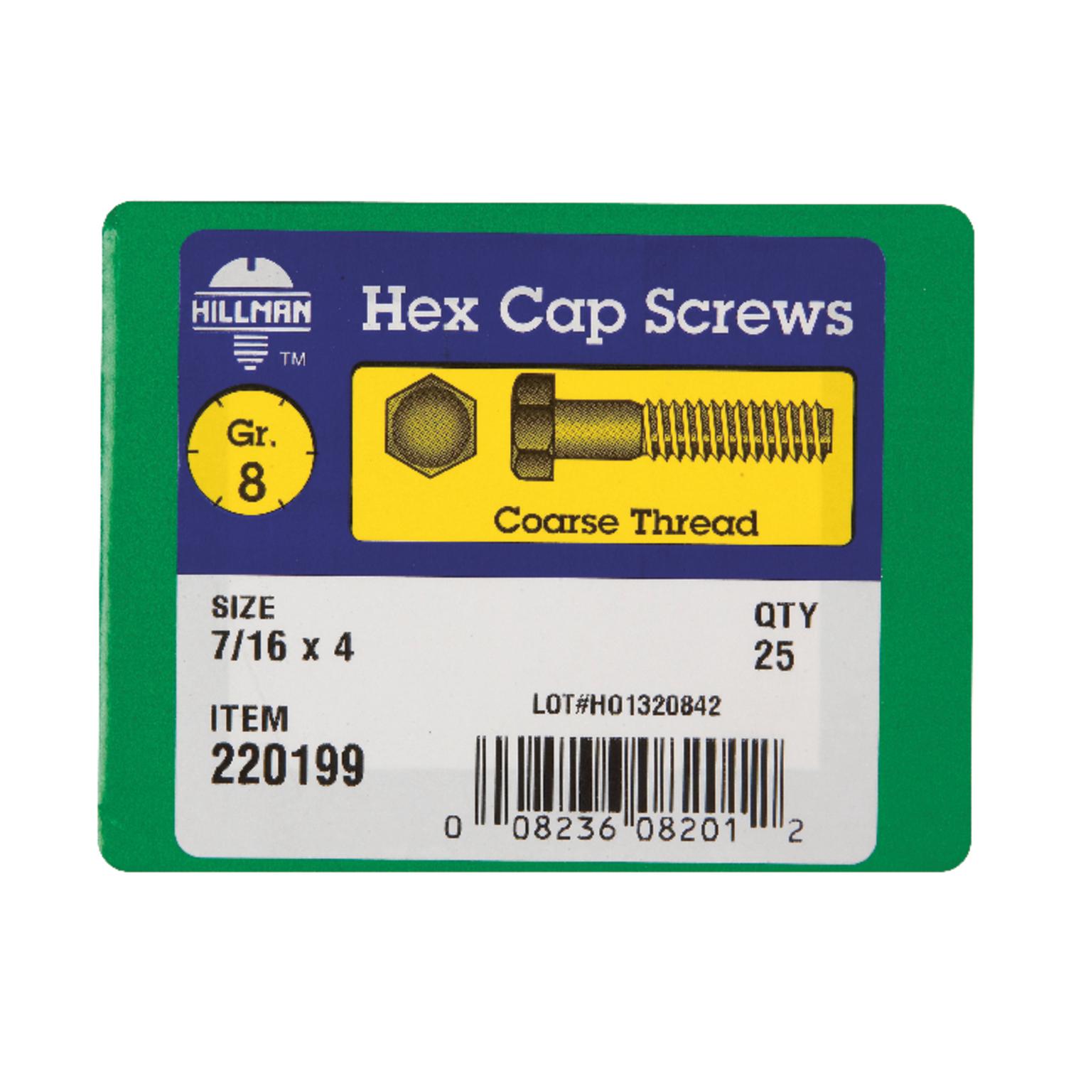 Hillman 7/16 in. Diameter x 4 in. Length Grade 8 Heat-Treated Steel Hex Head Cap Screws, Coarse Thread, 25-Pack