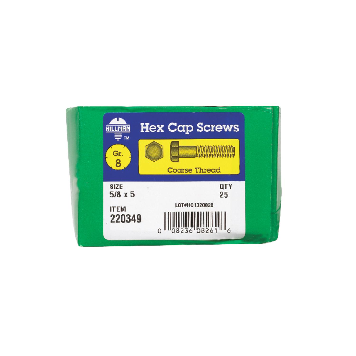 Hillman 5/8 in. Diameter x 5 in. Length Grade 8 Heat-Treated Steel Hex Head Cap Screws, Coarse Thread (25-Pack)