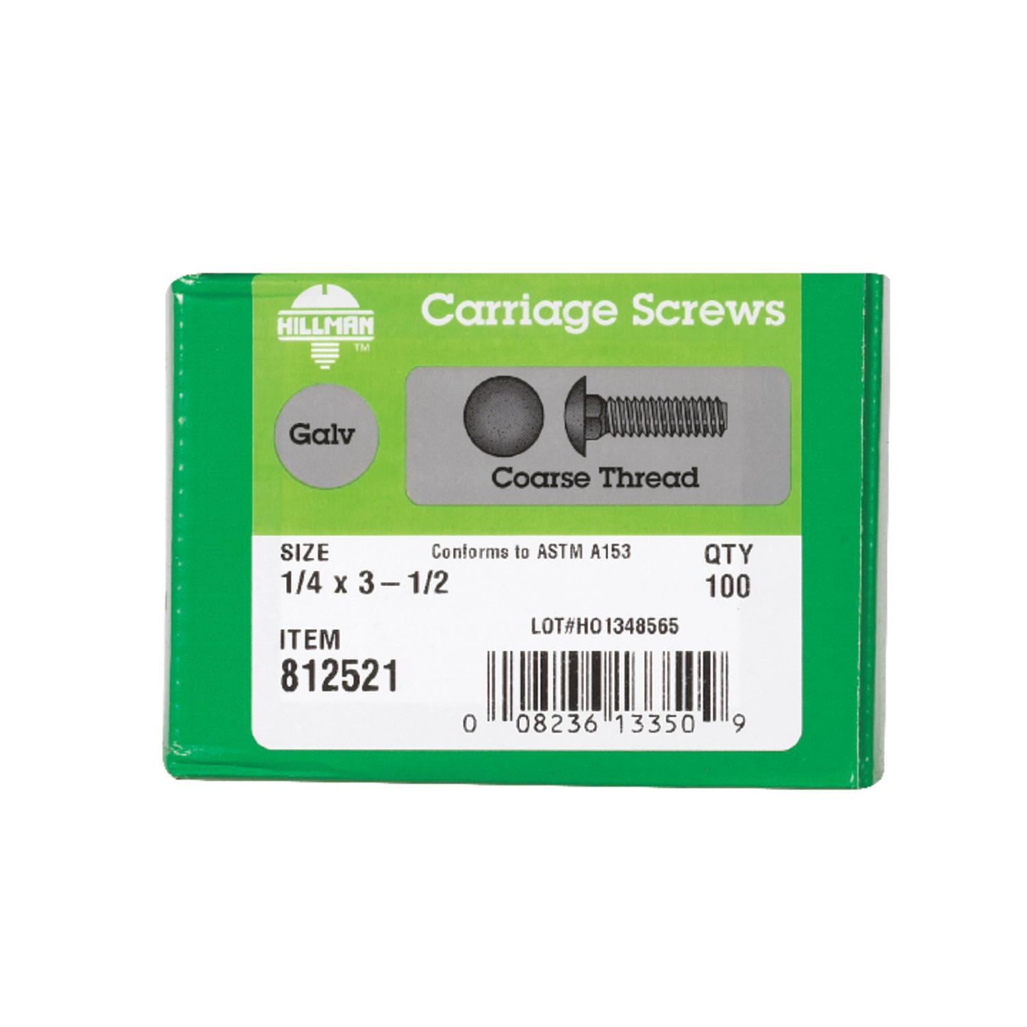 Hillman 1/4 in. x 3-1/2 in. Hot-Dipped Galvanized Steel Carriage Bolts, Coarse Thread (100-Pack)