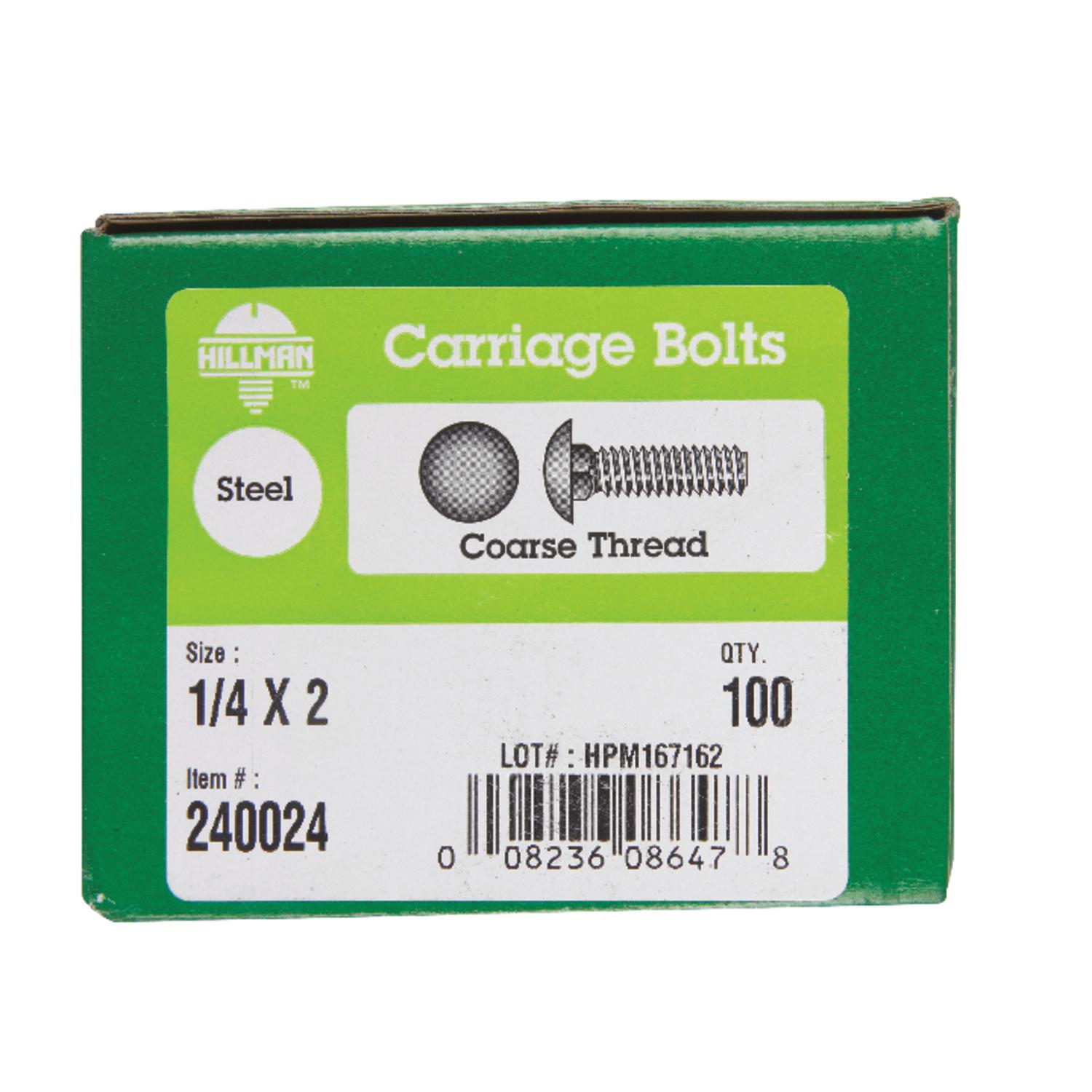 Hillman 1/4 in. x 2 in. Zinc-Plated Steel Carriage Bolts, Coarse Thread, 100 Pack