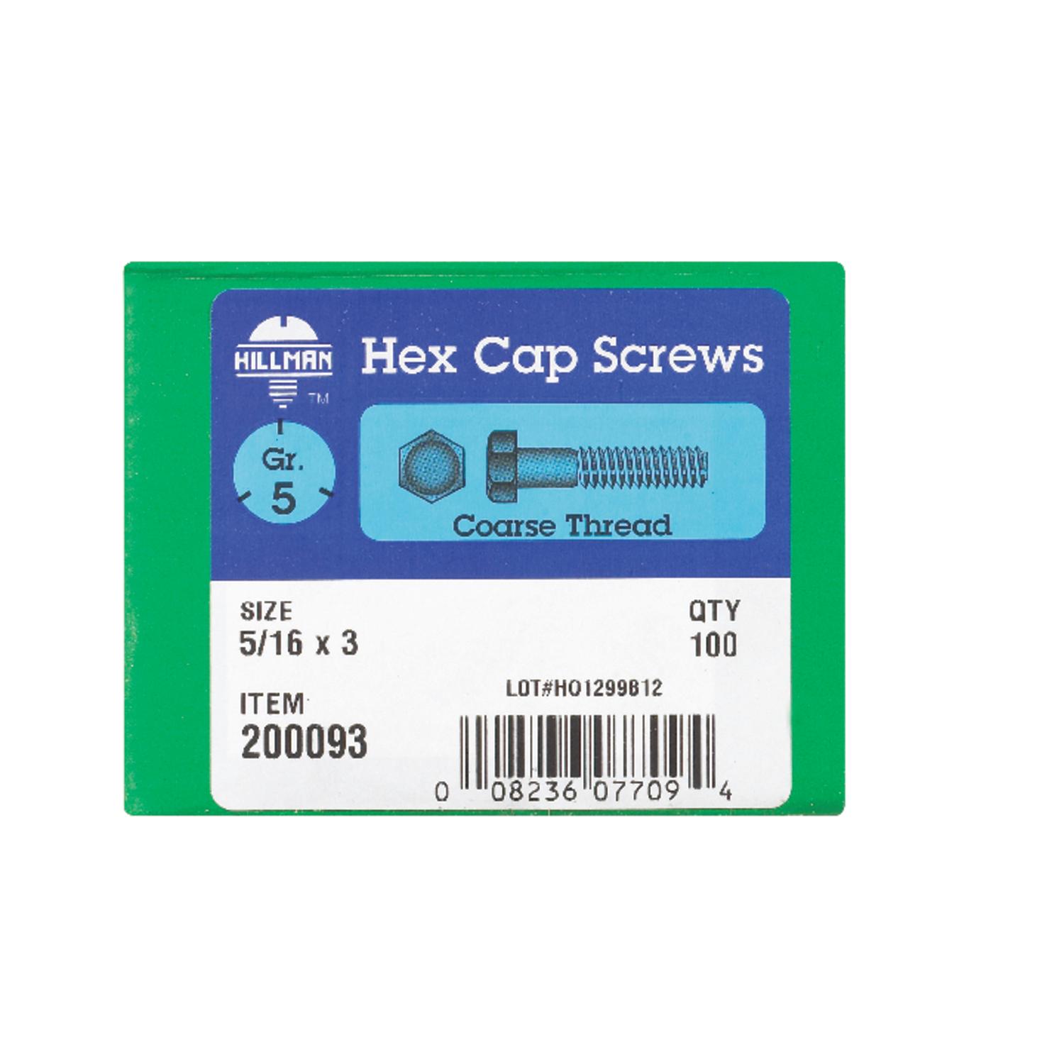 Hillman 5/16 in. Diameter x 3 in. Length Grade 5 Heat-Treated Zinc Steel Hex Head Cap Screws, Coarse Thread, 100-Pack