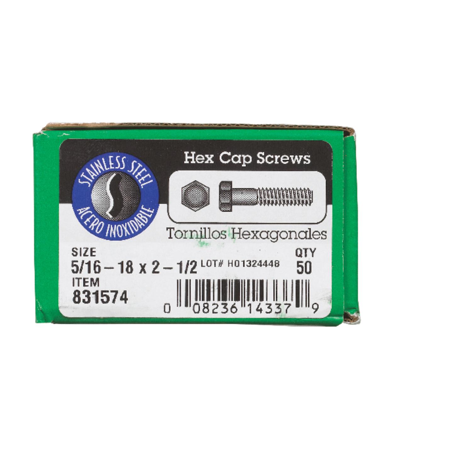 Hillman 5/16-18 x 2-1/2 in Stainless Steel Hex Head Cap Screws, 50-Pack
