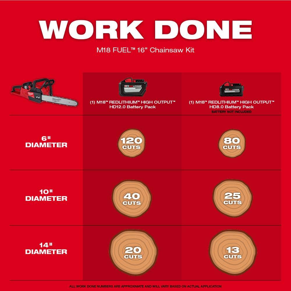 • Long Runtime: REDLITHIUM HIGH OUTPUT HD12.0 battery delivers up to 150 cuts per charge on the 16 in. saw