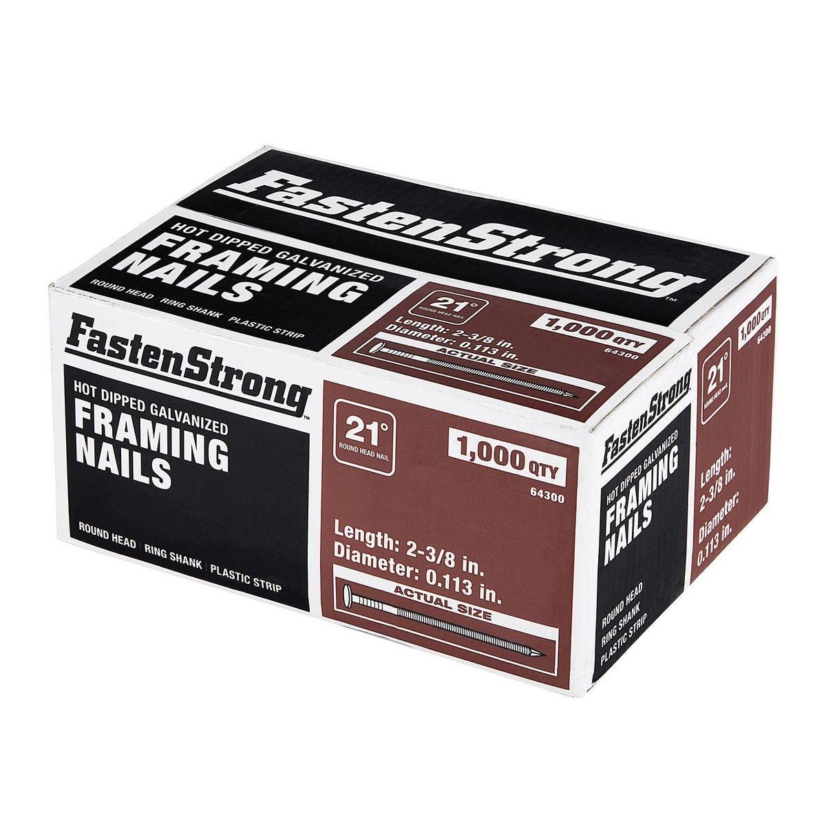 21° 2-3/8 in. Galvanized Framing Nails, Ring Shank, 1,000 Pc.