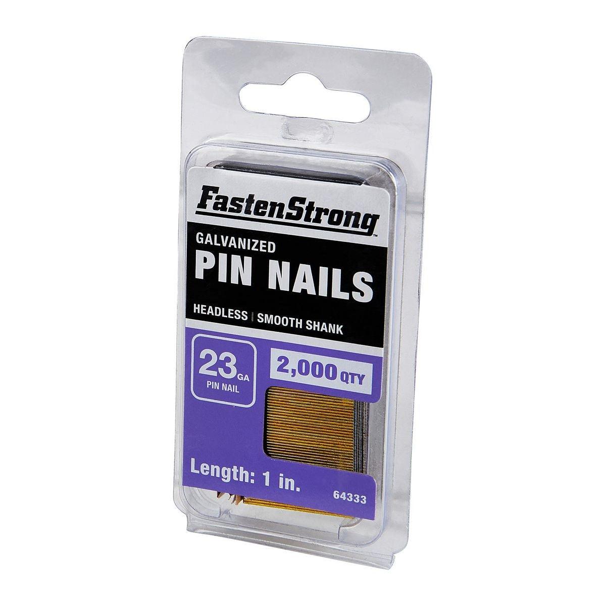 FastenStrong™ pin nails are ideal for fastening small wood trim that might be split or damaged by 18-gauge nails. Galvanized to resist corrosion.