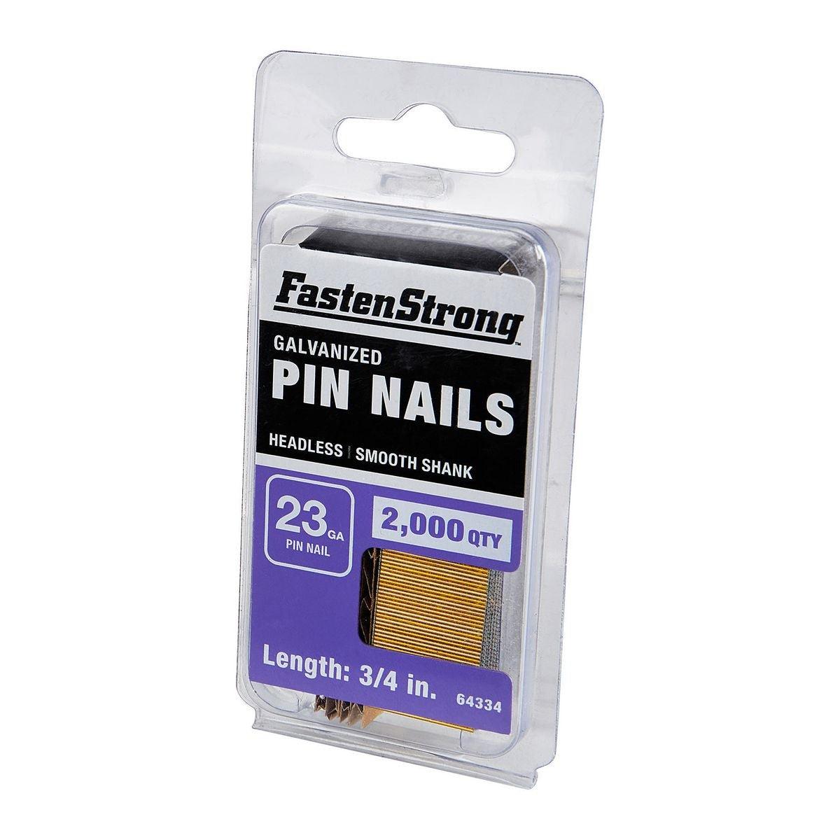 FastenStrong™ pin nails are ideal for fastening small wood trim that might be split or damaged by 18-gauge nails. Galvanized to resist corrosion.