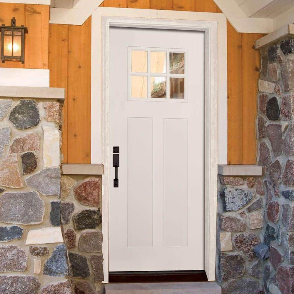 36 in. x 80 in. 6 Lite Clear Craftsman Unfinished Smooth Right-Hand Inswing Fiberglass Prehung Front Door