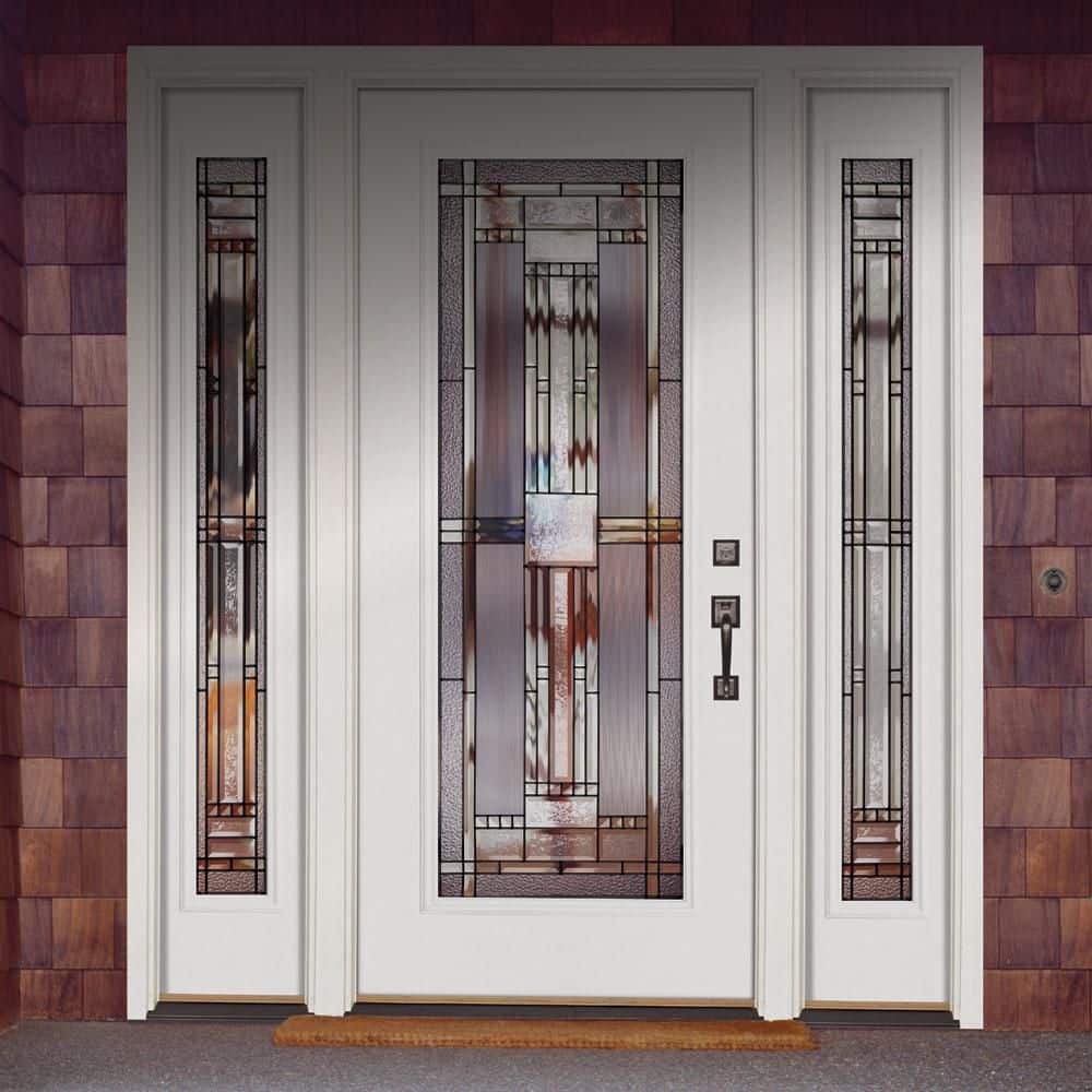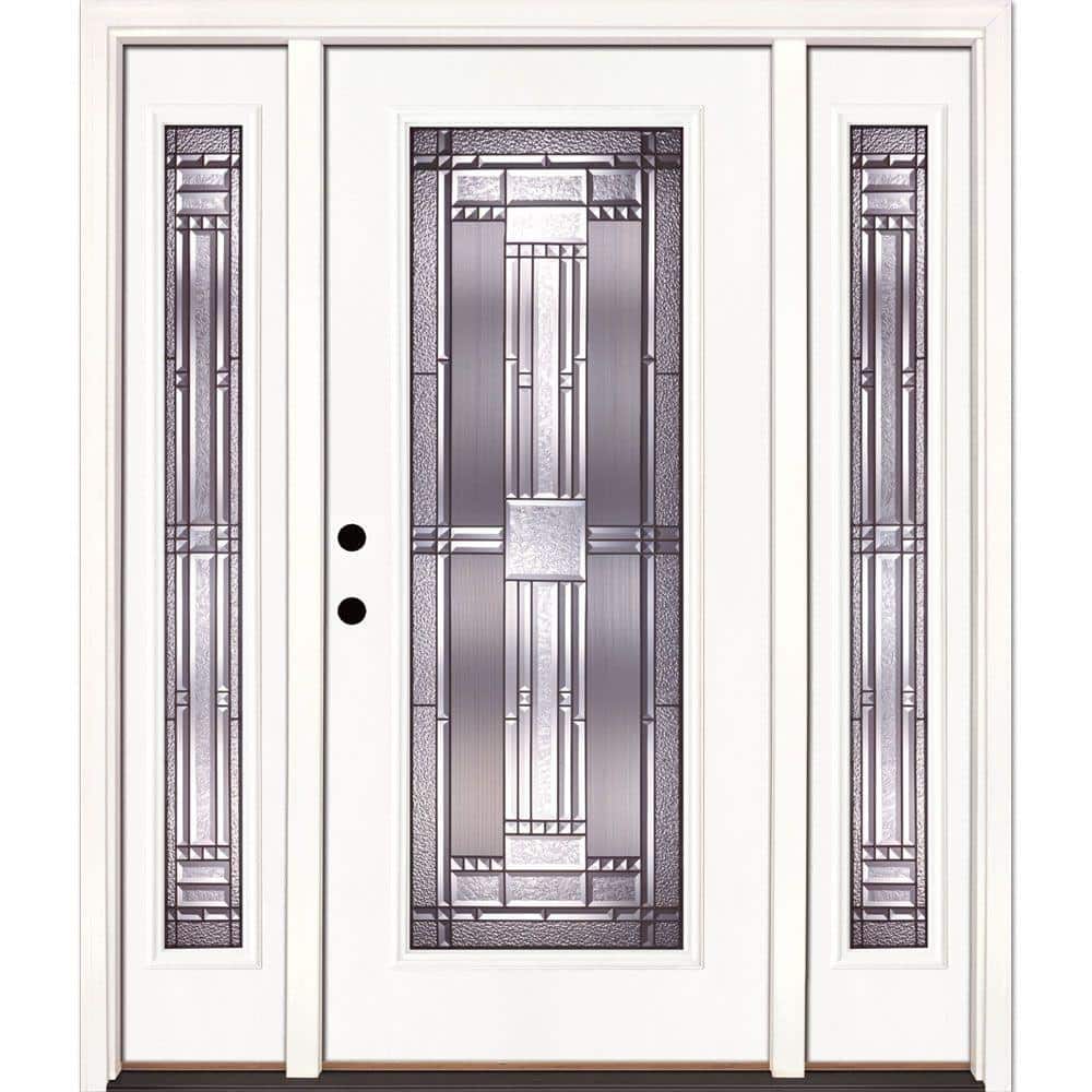 63.5 in. x 81.625 in. Preston Patina Full Lite Unfinished Smooth Right-Hand Fiberglass Prehung Front Door with Sidelites