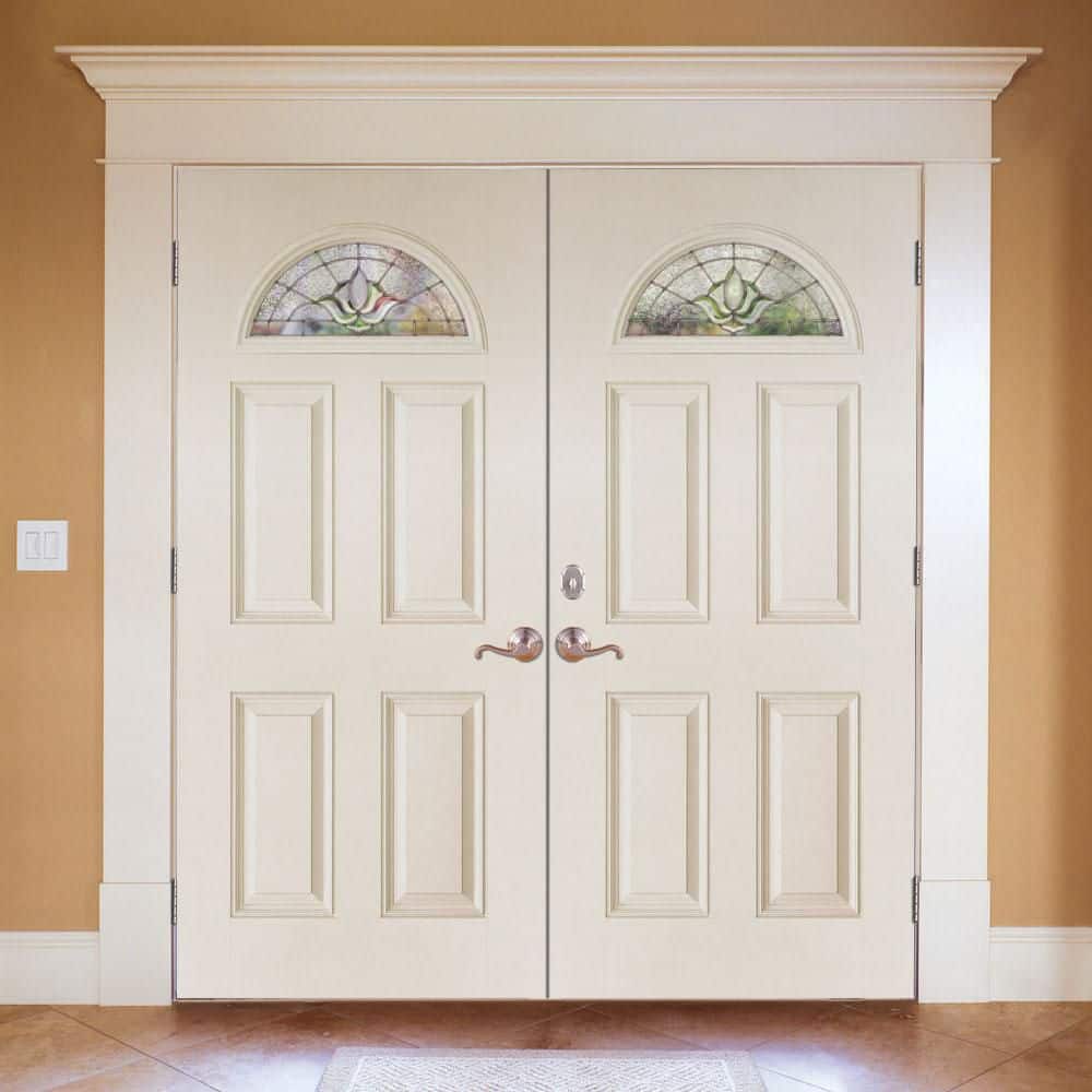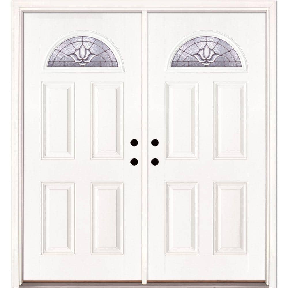74 in. x 81.625 in. Medina Zinc Fan Lite Unfinished Smooth Right-Hand Inswing Fiberglass Double Prehung Front Door