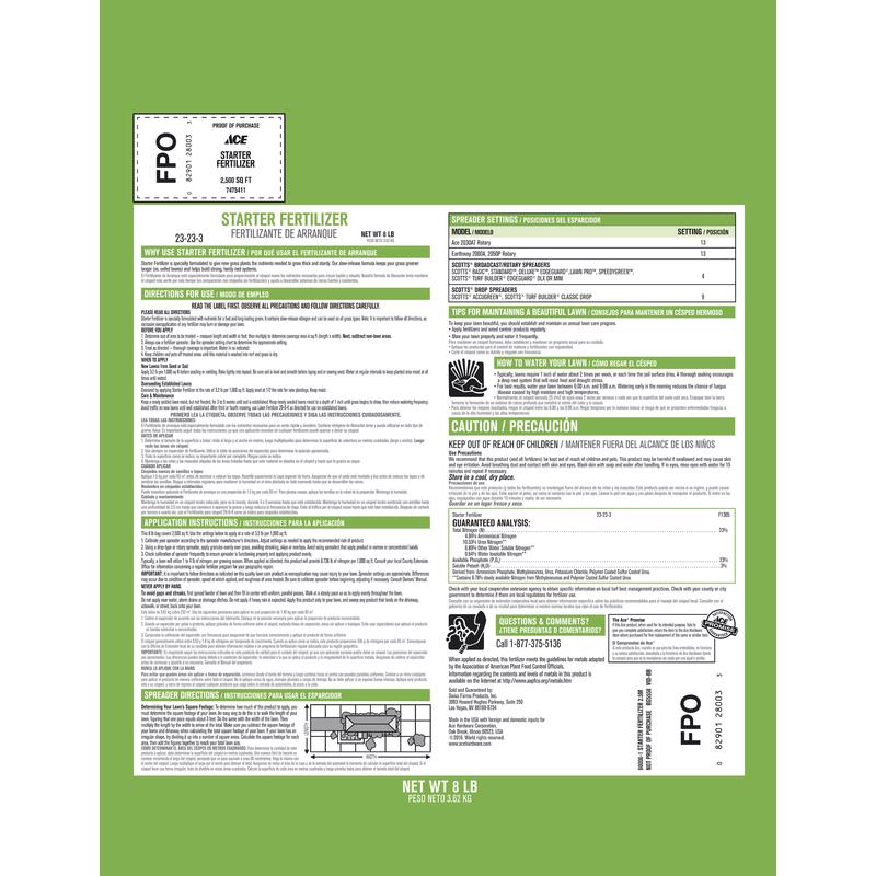 Ace Lawn Starter Fertilizer for All Grasses, 2,500 sq ft Coverage, 23-23-3, 8 lb Bag