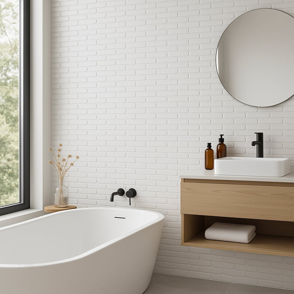 The White Elongated Oval Porcelain Mosaic transforms any room into a haven of sophistication. Its high gloss finish reflects light beautifully, creating a sense of spaciousness and luxury. Pair it with natural wood tones or sleek metallic accents for a modern yet warm aesthetic. This tile is not just a design choice; it's a statement of refined taste and enduring quality.