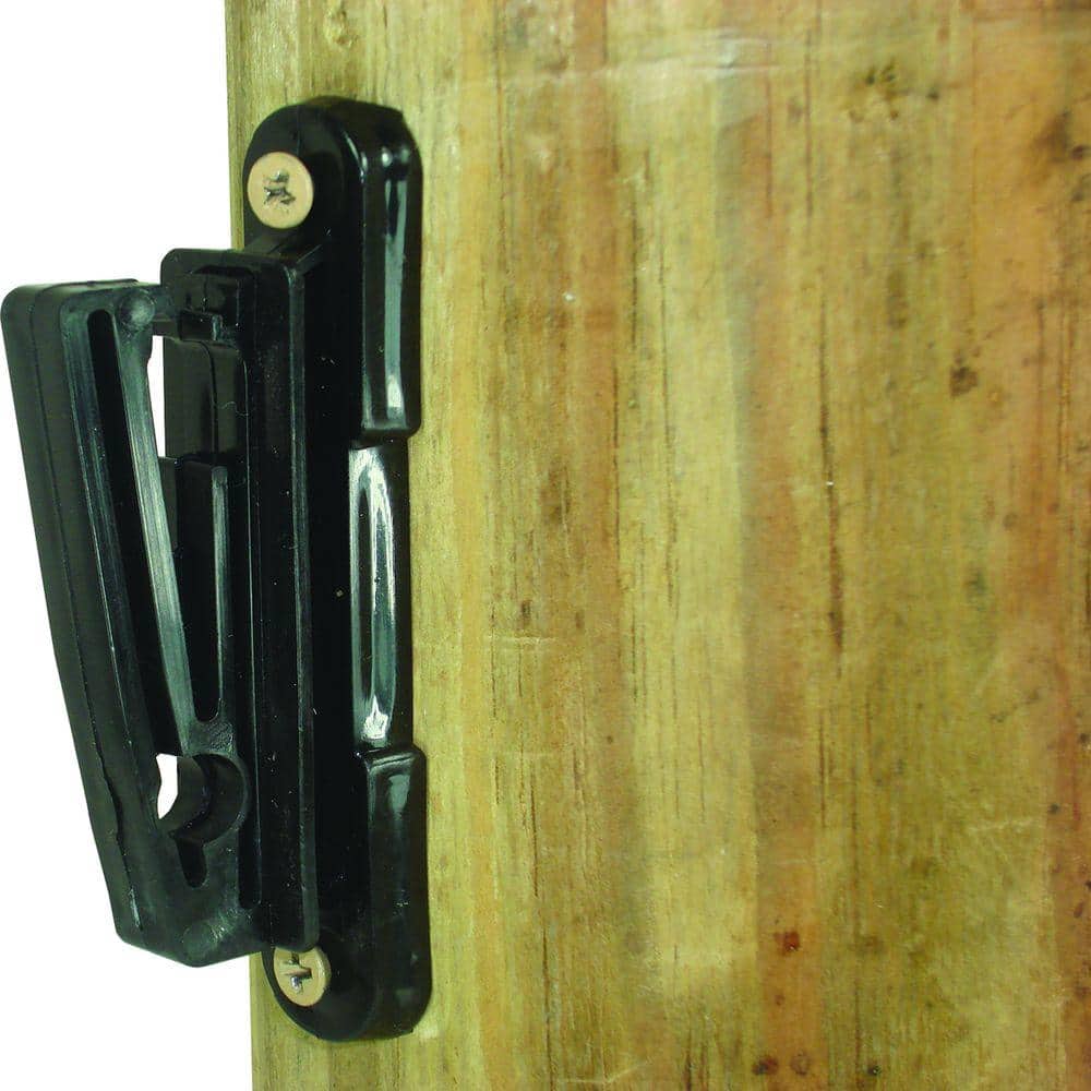 The Field Guardian 2 in. Wood Post Nail-On Polytape Insulator in Black provides a strong and reliable solution for electric fencing. Suitable for wood or vinyl posts, these insulators ensure secure installation of polytape or polyrope, delivering enhanced stability and durability.