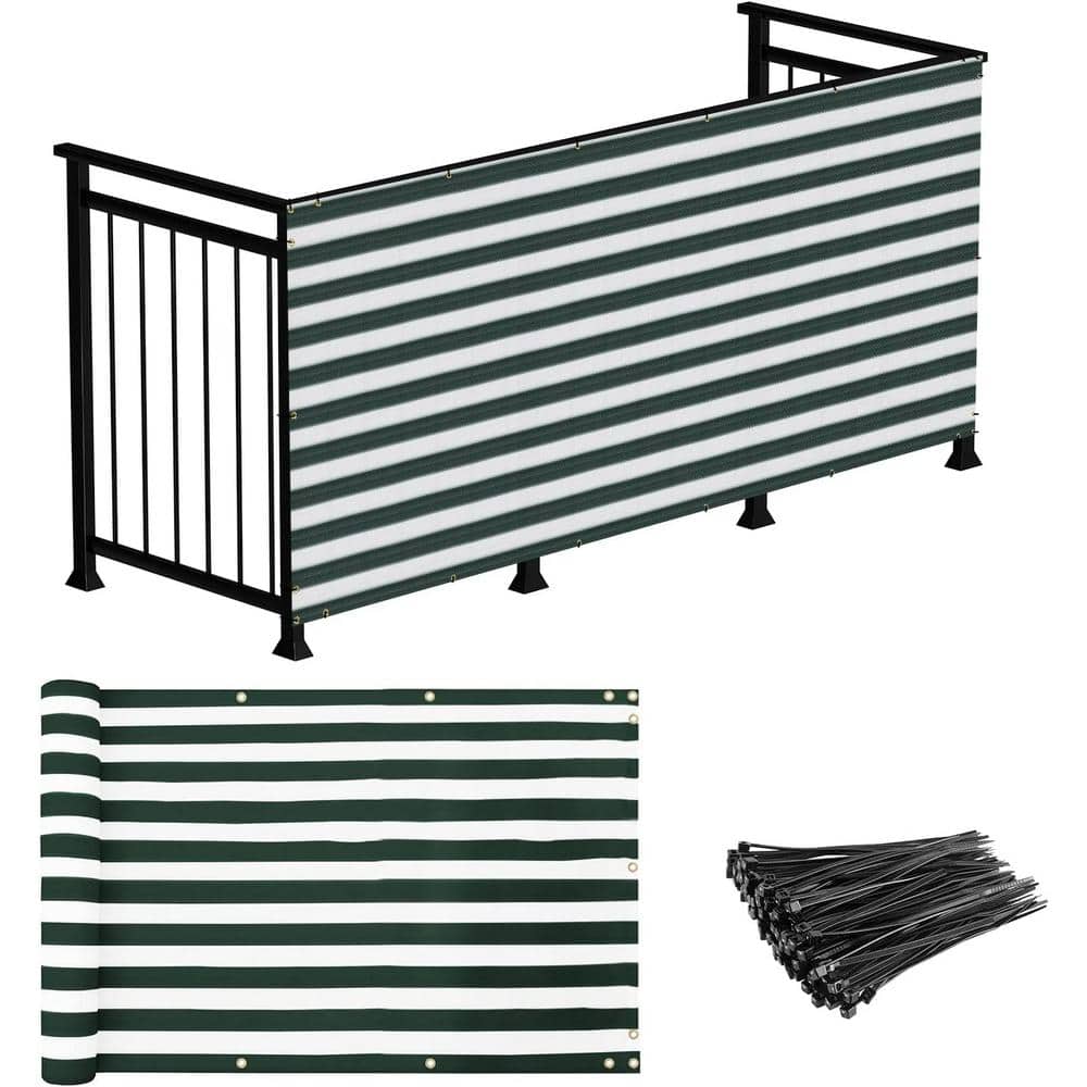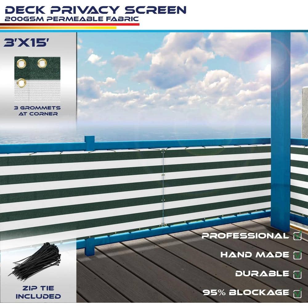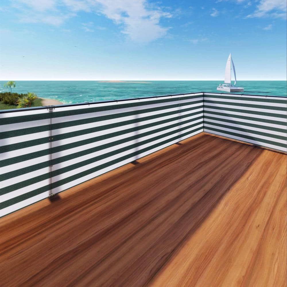3 ft. x 15 ft. Deck Balcony Privacy Screen for Deck Pool Fence Railings Apartment Balcony Privacy Screen, Green & White