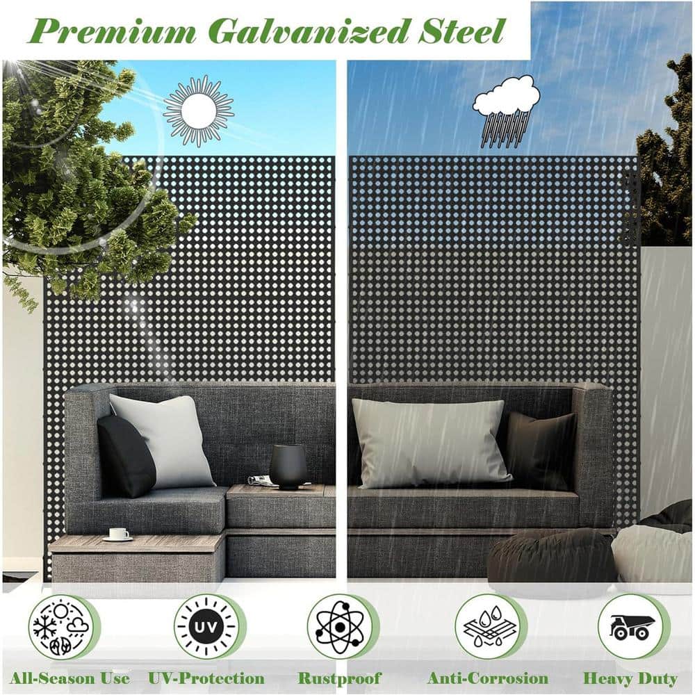 Enhance your outdoor space with the Cesicia 70 in. Steel Garden Privacy Screen. Crafted from rust-proof galvanized steel, it offers durability and an eye-catching semi-circular design to create a harmonious balance between privacy and style. Perfect for patios, balconies, or garden use, it blends seamlessly with your outdoor decor while providing essential privacy.