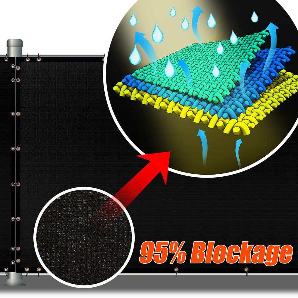 Enhance your outdoor privacy with the AMGO 6 ft. H x 10 ft. W Black Fence Outdoor Privacy Screen. Crafted from UV-resistant polyethylene, it's designed to blend durability with breathability, ensuring robust performance in various settings—from patios to construction sites. The heavy-duty edge bindings and strategically placed grommets make installation easy and secure.