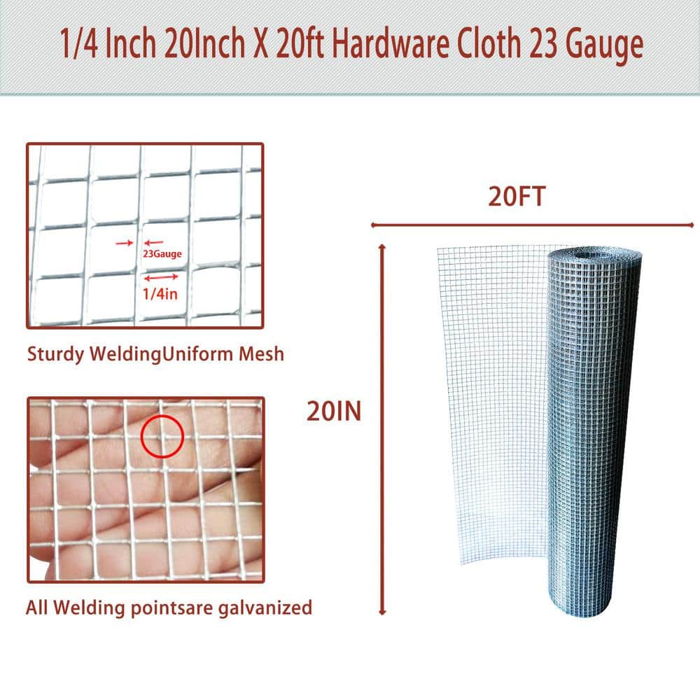 Angel Sar 1/4 in. x 1.66 ft. x 20 ft. Hardware Cloth, 23 Gauge Hot-dip Galvanized After Welding, Chicken Wire Fence Garden Fencing