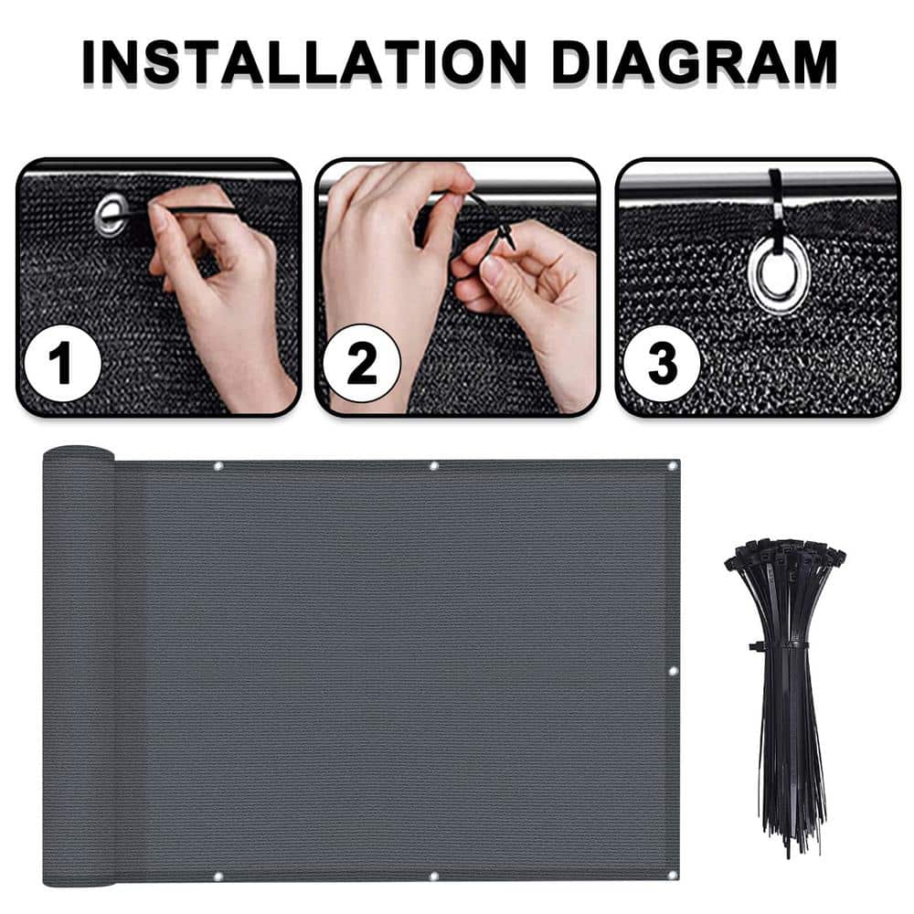Angel Sar 3 x 10 ft. Charcoal Balcony Privacy Screen Fence Cover for Deck, Patio, Backyard, Outdoor Pool, Porch, Railing
