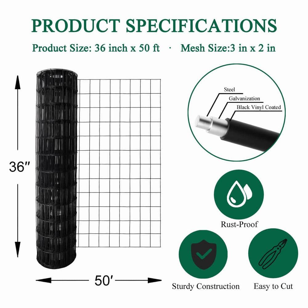 Angel Sar 36 in. x 50 ft. 16-Gauge Black PVC Poultry Netting, Coated Welded Wire Fence for Yard Vegetable Plant Protection
