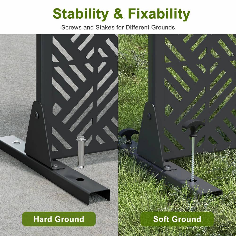 Enhance your outdoor space with Cadeninc's freestanding metal privacy screens. These panels provide a modern solution for outdoor privacy, made from robust galvanized steel for durability against the elements. Easy to assemble and versatile in placement, they are perfect for creating intimate areas without compromising on style.