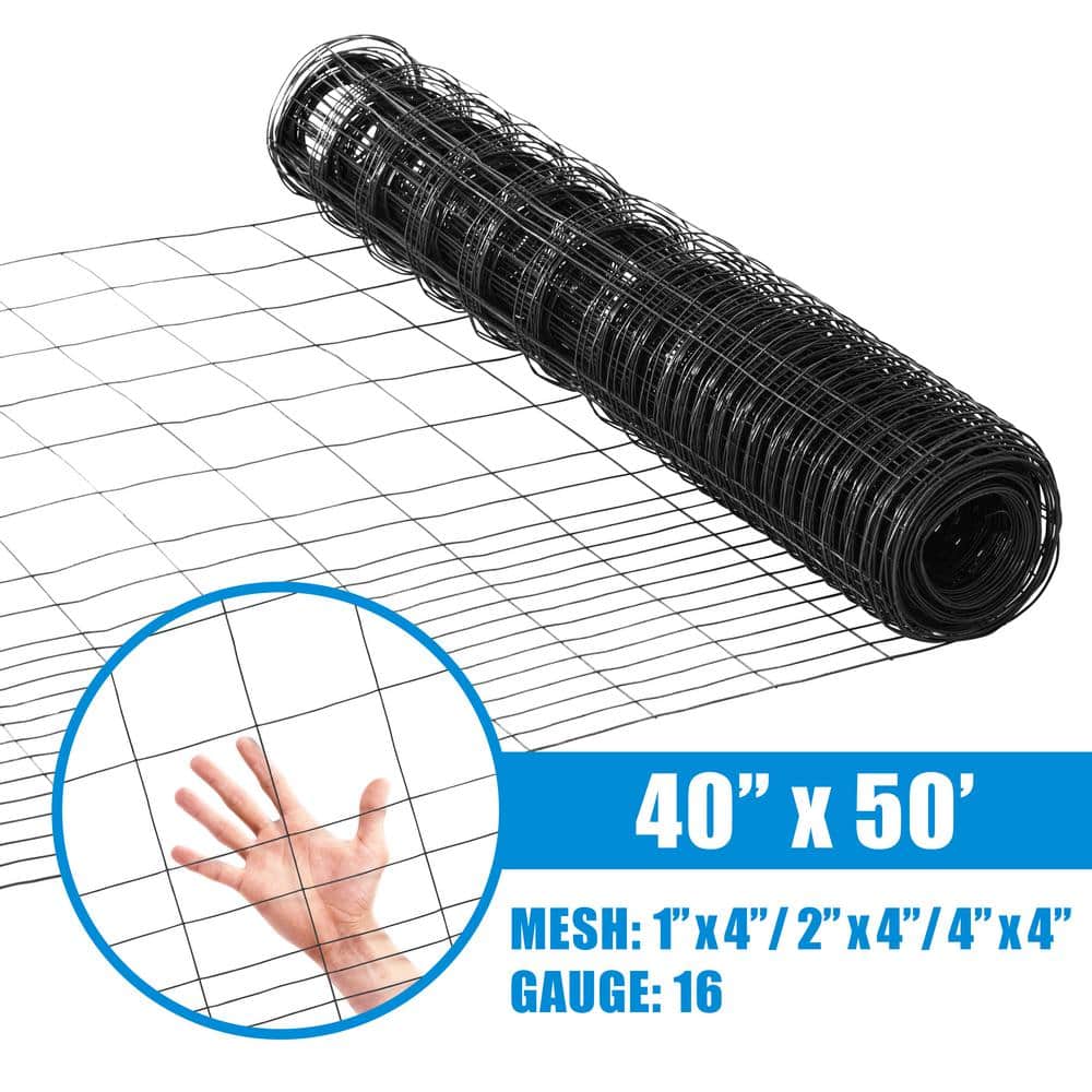 Fencer Wire 40 in. x 50 ft. 16-Gauge Black PVC-Coated Rabbit Guard Fence, Poultry Fencing Wire Roll for Garden Yard Vegetable Plant
