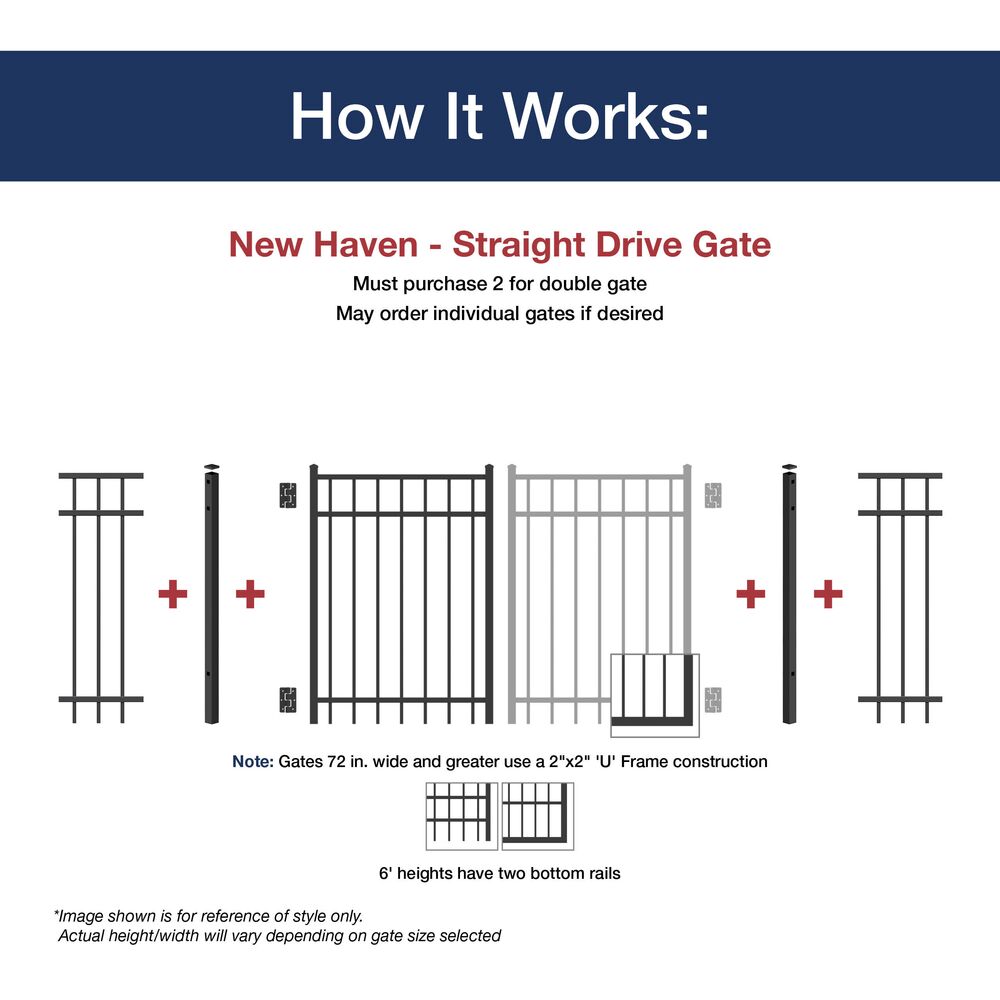 Elevate your property's curb appeal with the New Haven 5-ft H x 5-ft W Black Aluminum Spaced Picket Fence Gate. Crafted from powder-coated aluminum, this gate offers unmatched durability with a sleek, modern aesthetic. Its rust-resistant finish ensures longevity and low maintenance, perfect for both function and style in residential or commercial projects.