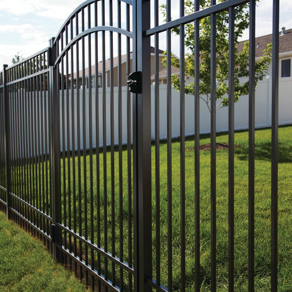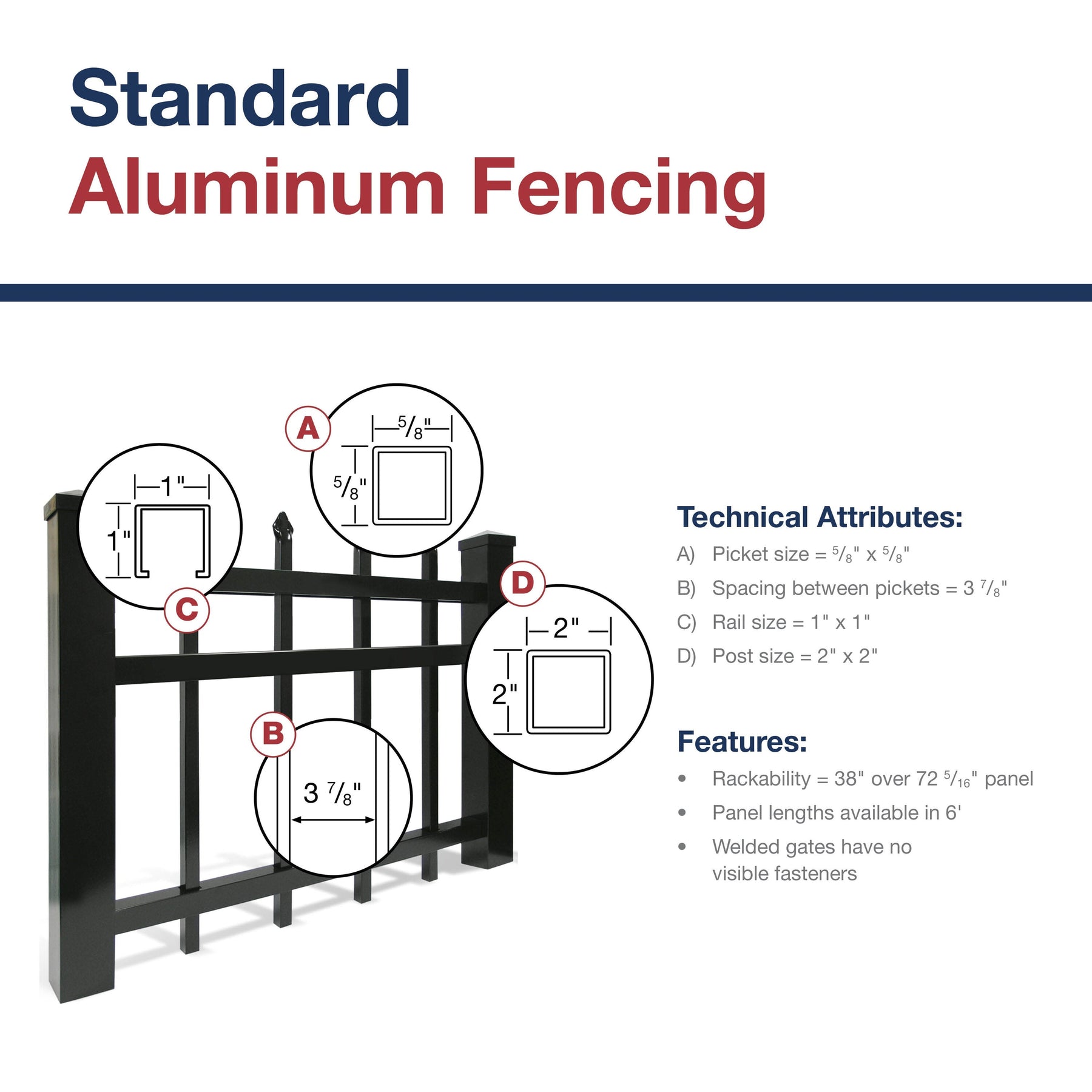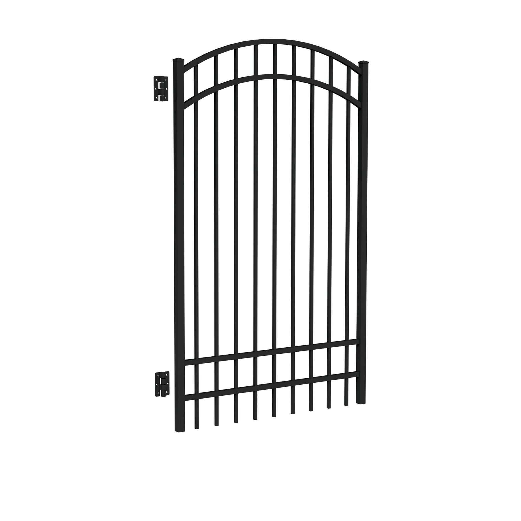 Enhance your property's curb appeal with the Freedom New Haven Decorative Fence Gate. Its robust black aluminum construction is designed to resist rust and corrosion, ensuring a lasting addition to your fence. This gate features a classic flat-top design that seamlessly integrates with your New Haven fence system.