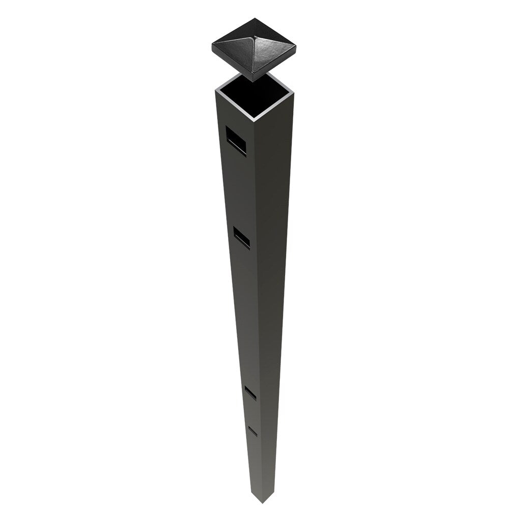 Freedom New Haven 9-ft H x 2-in W Black Aluminum Spaced Picket Flat-top Decorative Gate Fence Post