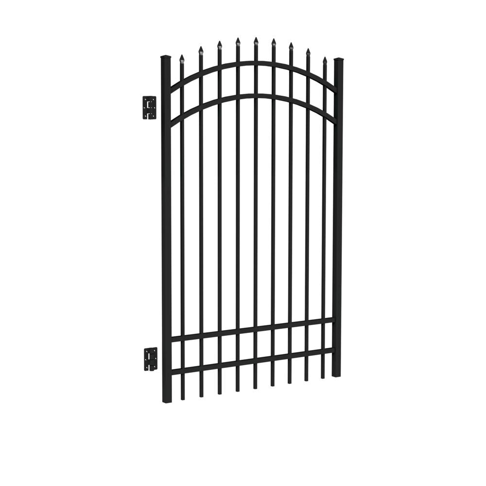 Enhance your property's appeal with the Freedom Providence Fence Gate, designed for style and longevity. This 6-ft H x 4-ft W gate features a sleek black powder-coated finish and spaced pickets with pressed-point tops, making it a striking yet classic choice for any home. Made from durable aluminum, it's resistant to rust and corrosion, promising years of maintenance-free beauty.