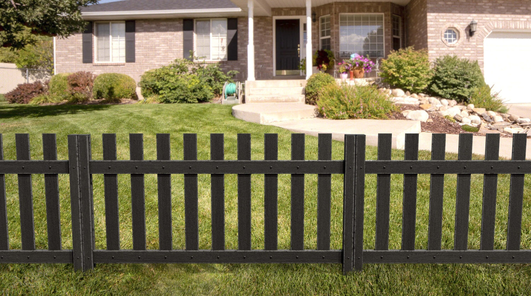 Enhance your outdoor fencing with Natures Composites' eco-friendly black composite fence pickets. Crafted from a sustainable blend of wheat straw, these pickets offer the durability and classic charm of wood without the maintenance hassles. Enjoy lasting color and resilience against weather and insects, backed by a 25-year warranty.
