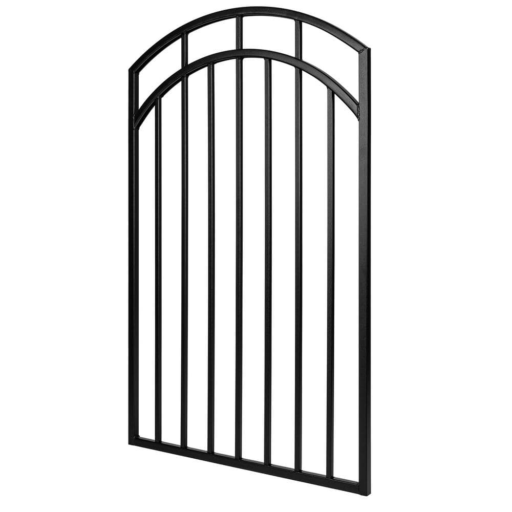 NUVO IRON 2.75 ft. x 4.67 ft. Benitoite Profile Black Iron Center Point Arched Top Fence Gate