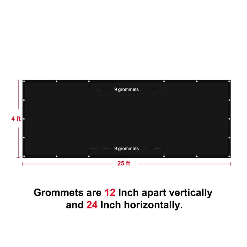 Privacy FenceScreen Heavy-Duty 90% Blockage Shade Cover FencingNet for Wall Garden Gazebo Backyard 4 ft. x 25 ft., Black