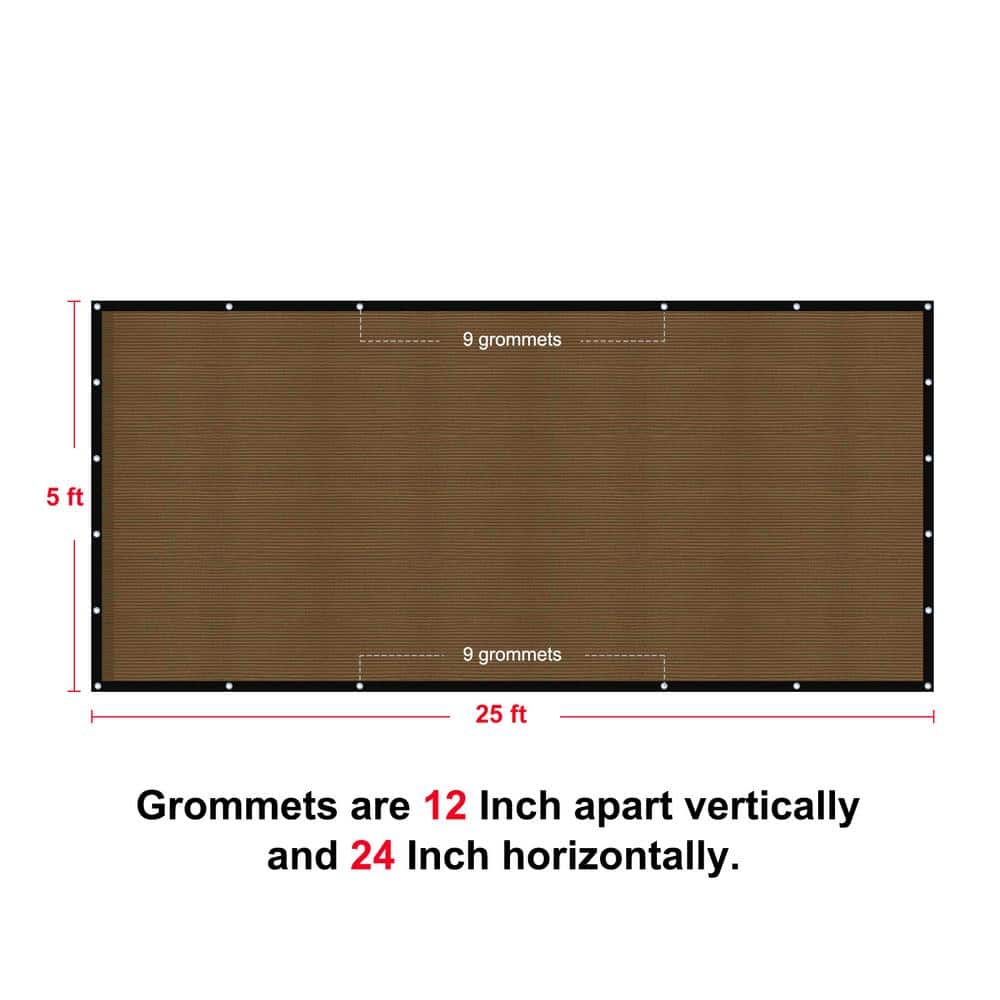 Privacy FenceScreen Heavy-Duty 90% Blockage Shade Cover FencingNet for Wall Garden Gazebo Backyard 5 ft. x 25 ft., Brown