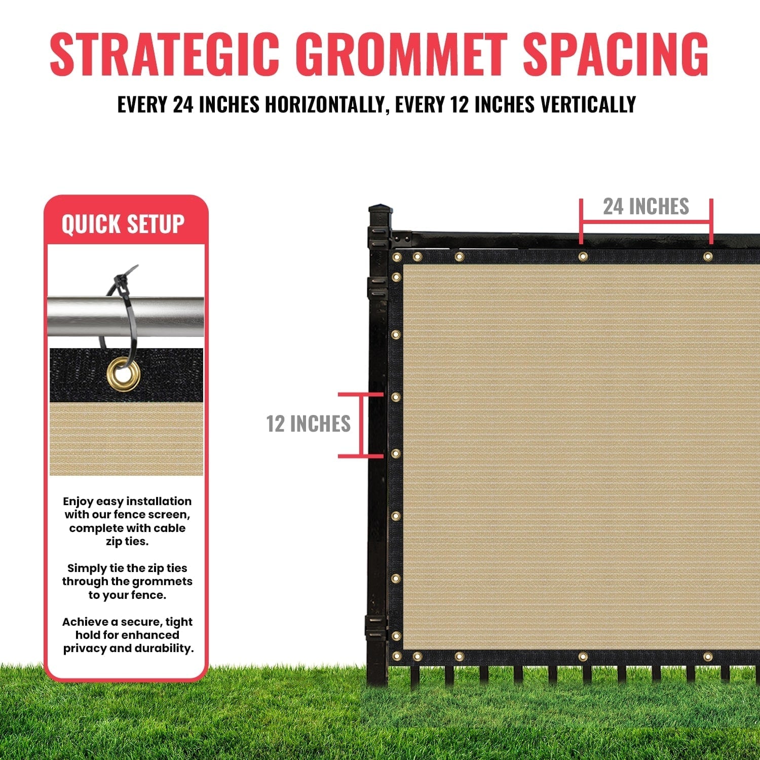 Transform your outdoor space with the SEALTECH 5-ft Beige Privacy Fence Screen, designed to ensure maximum privacy and durability. Made from premium, UV-resistant polypropylene, this screen is perfect for both residential and commercial applications. Easy to install with provided cable zip ties, it offers a quick upgrade to your yard's aesthetic and seclusion.