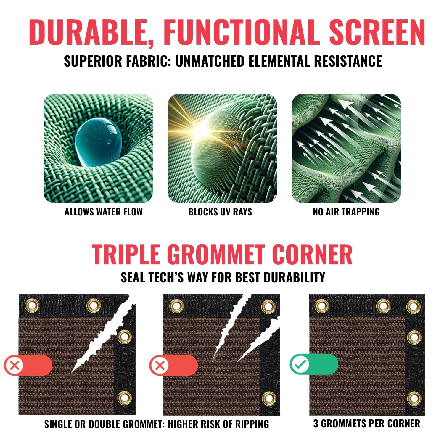 • Durable Construction: Made with heavy-duty material and rustproof grommets for stability.