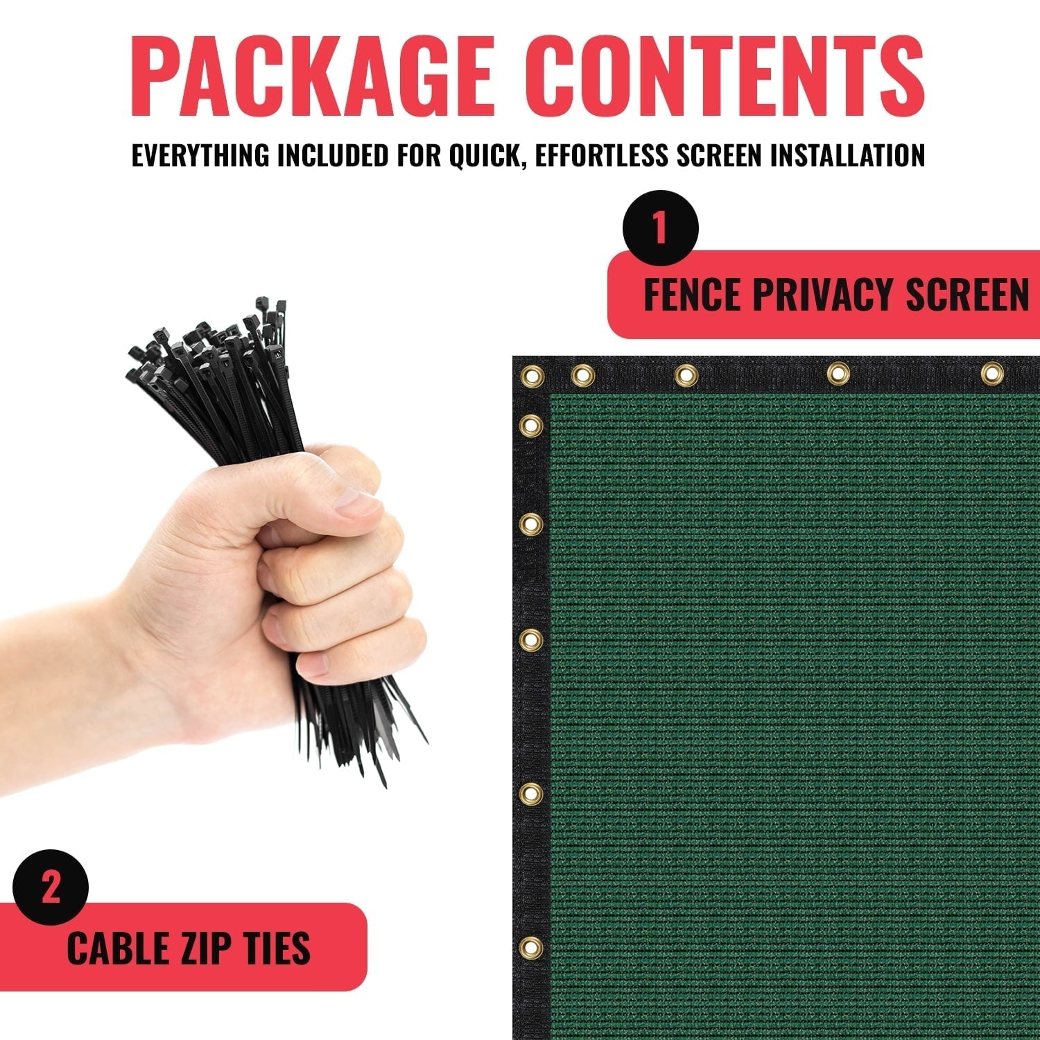 A: The fence screen is designed for easy installation and includes cable zip ties, enabling a quick and hassle-free setup.