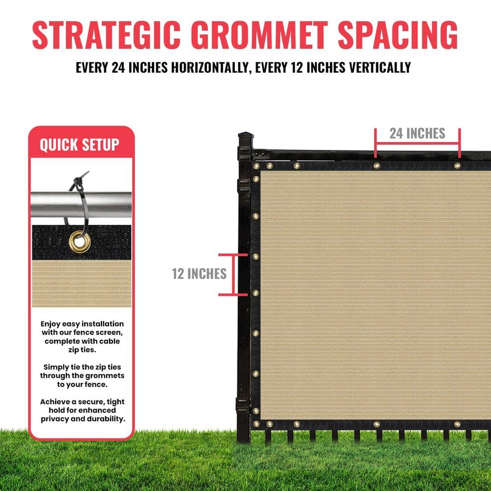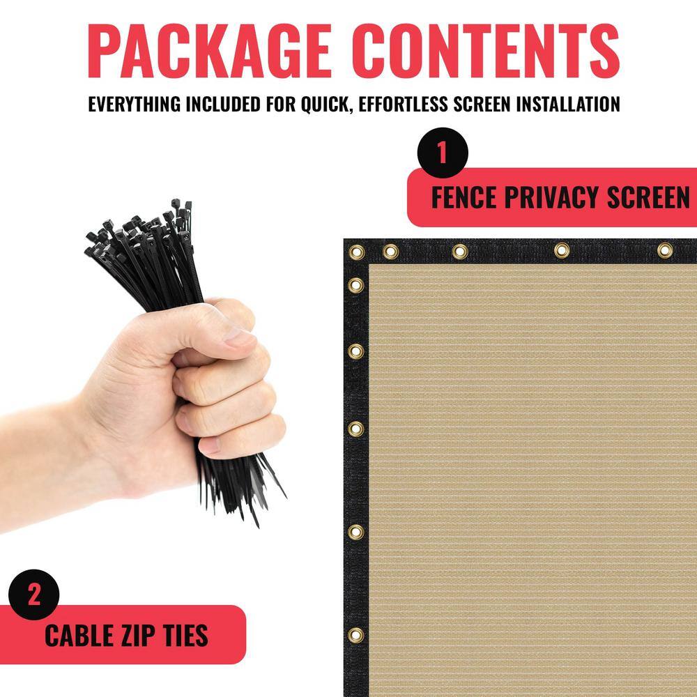 SEALTECH Ultra Heavy-Duty 200 GSM Privacy Fence Screen Beige - 6 ft. x 20 ft. Non-Recycled Polyethylene 90% Cable Zip Ties