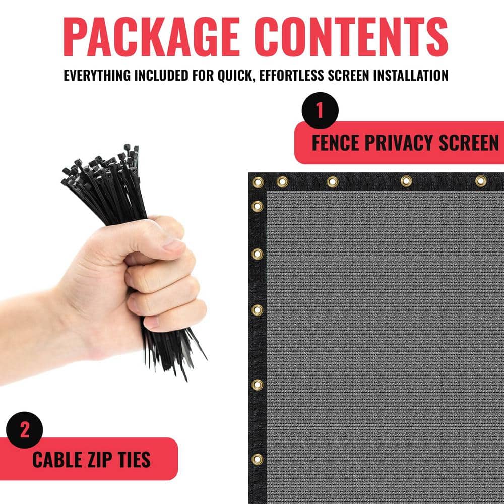 SEALTECH Ultra Heavy-Duty 200 GSM Privacy Fence Screen Grey 4 ft. x 10 ft. Non-Recycled Polyethylene 90% Cable Zip Ties