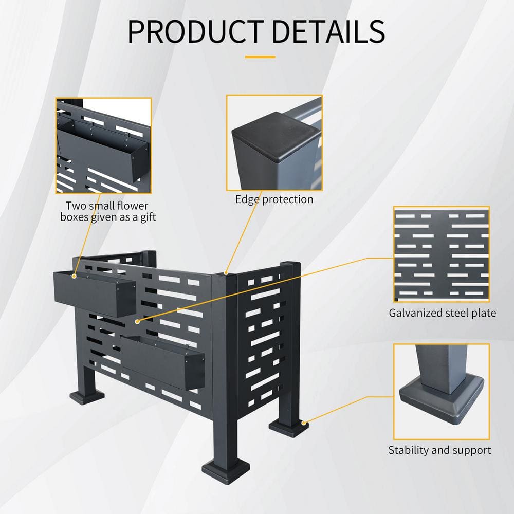 Enhance your outdoor space with the Sudzendf 3-Panel Metal Privacy Fence. Expertly designed to conceal air conditioning units while providing maximum privacy, this durable screen is crafted from premium galvanized steel and finished in a sophisticated charcoal tone. Perfect for patios, backyards, or gardens, it combines function with aesthetic appeal.