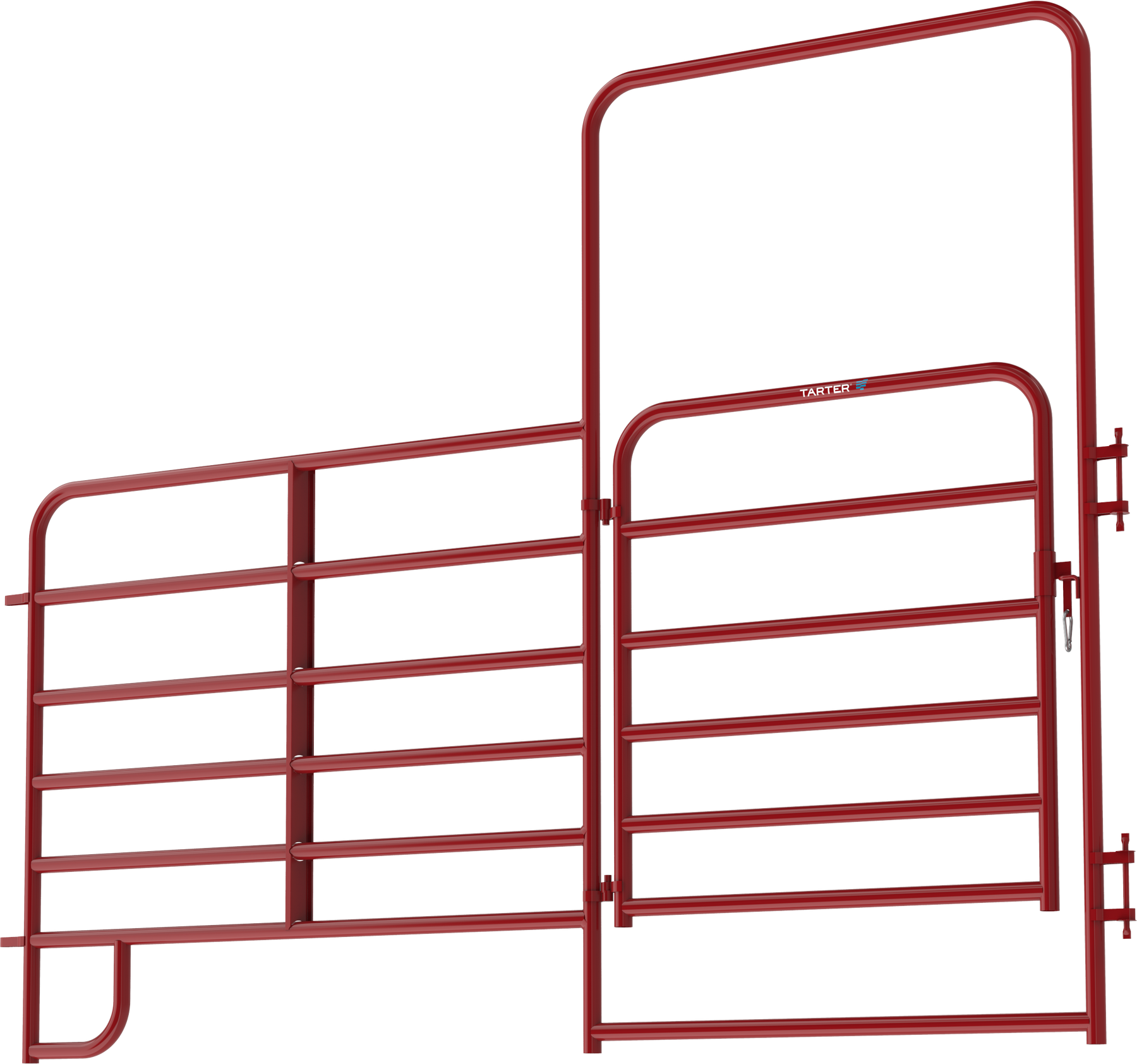 Enhance your property's functionality and security with the Tarter 8-ft H x 10-ft W Red E-coat Steel Walk-thru Fence Gate. Built for durability and reliable performance, this gate features a quick-pin latch system for seamless integration with corral panels. Engineered with an e-coat finish, it offers superior protection against harsh elements, perfect for livestock containment.